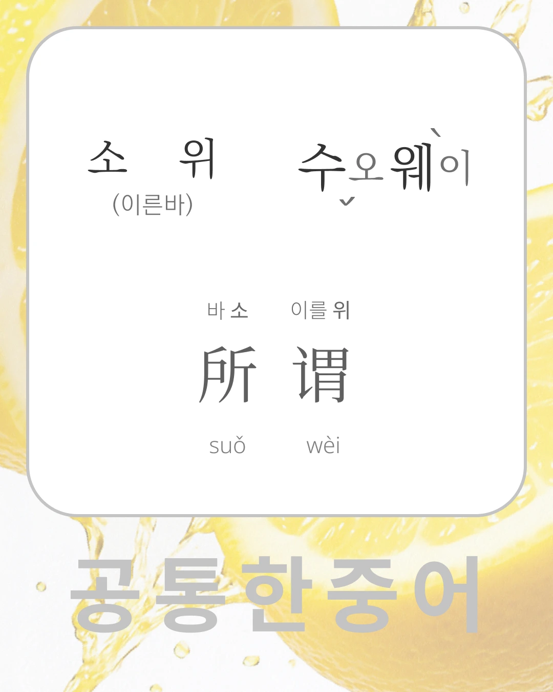 '소위~' '소위 말해서~'의 그 '소위'는 중국어로 '수오 웨이'입니다.