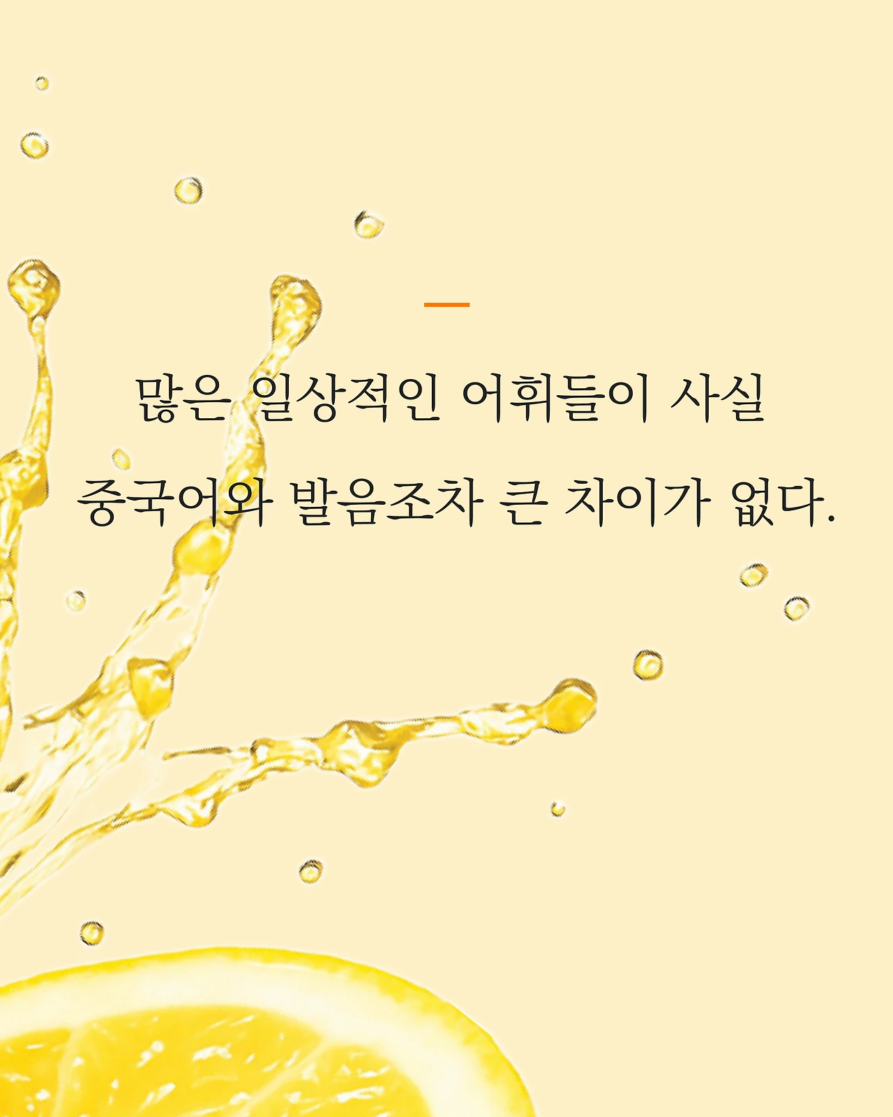 "한국인이라면 상대적으로 중국어 어휘를 익히기 쉽다"는 것을 '언어'와 '외국어 습득'과 관련된 다양한 주제로 버무려 구성한 내용입니다.