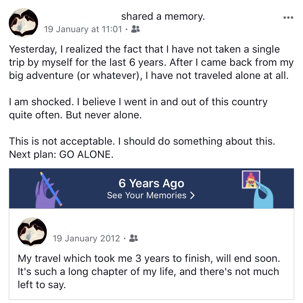 지난 6년 동안 7번 여행을 떠났고,