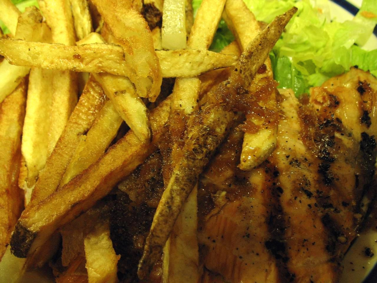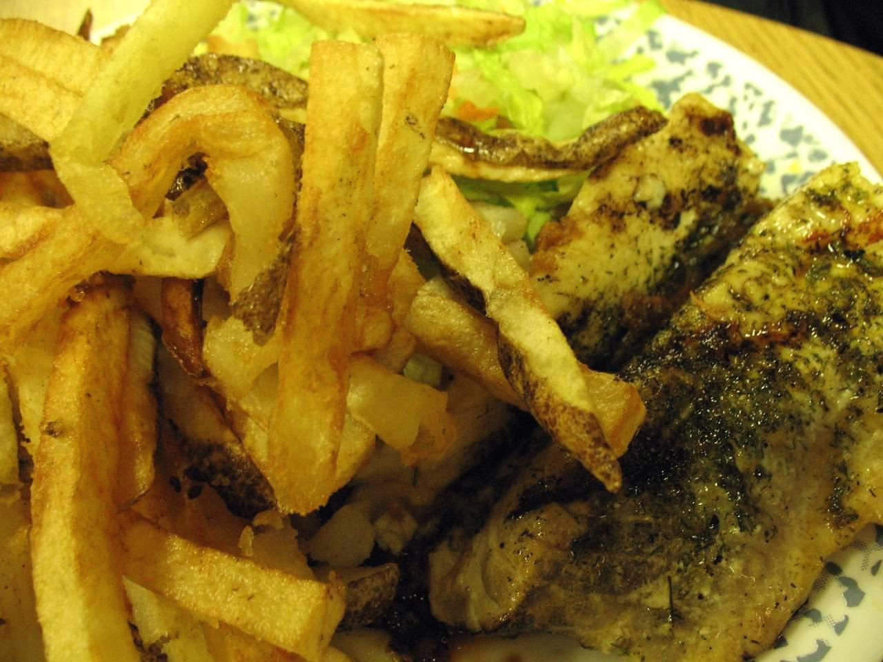 커다란 접시 한쪽에 스테이크 혹은 생선을 놓고 옆에 건강을 생각해 샐러드를 조금 놓는다. 그 위에 감자튀김을 산더미 같이 올리면 메뉴 완성! 어떤 음식을 시켜도 주인공은 감자튀김이라 다 똑같아 보인다. 사향소는 조금 질기긴 했지만 소스 맛으로 먹을만했고, 알틱 차는 연어와 매우 비슷한 맛이었다. 감자튀김을 밥 삼아 고기와 샐러드를 반찬 삼아, 맥주를 부지런히 마셔가며 외식을 즐겼다.
