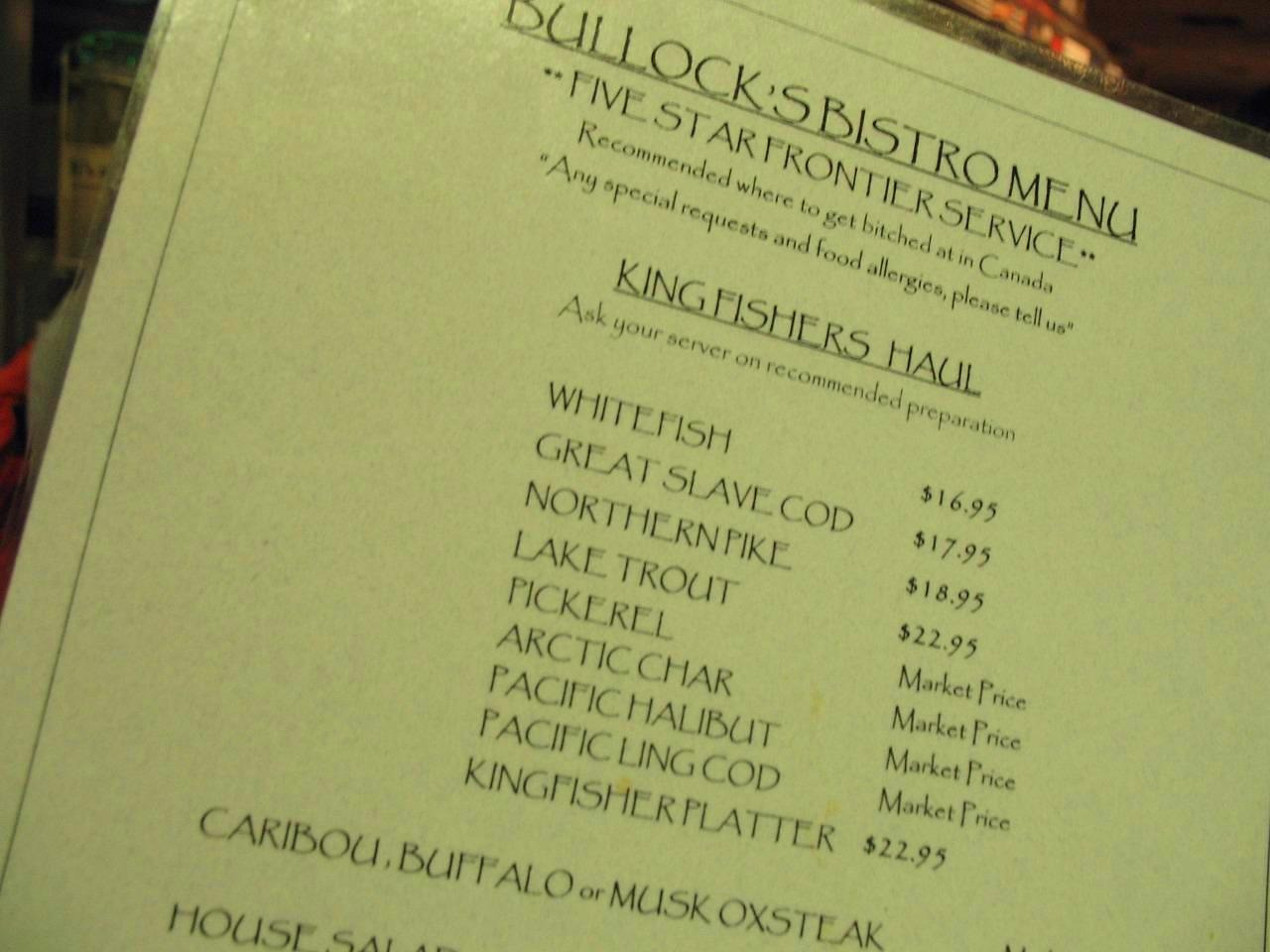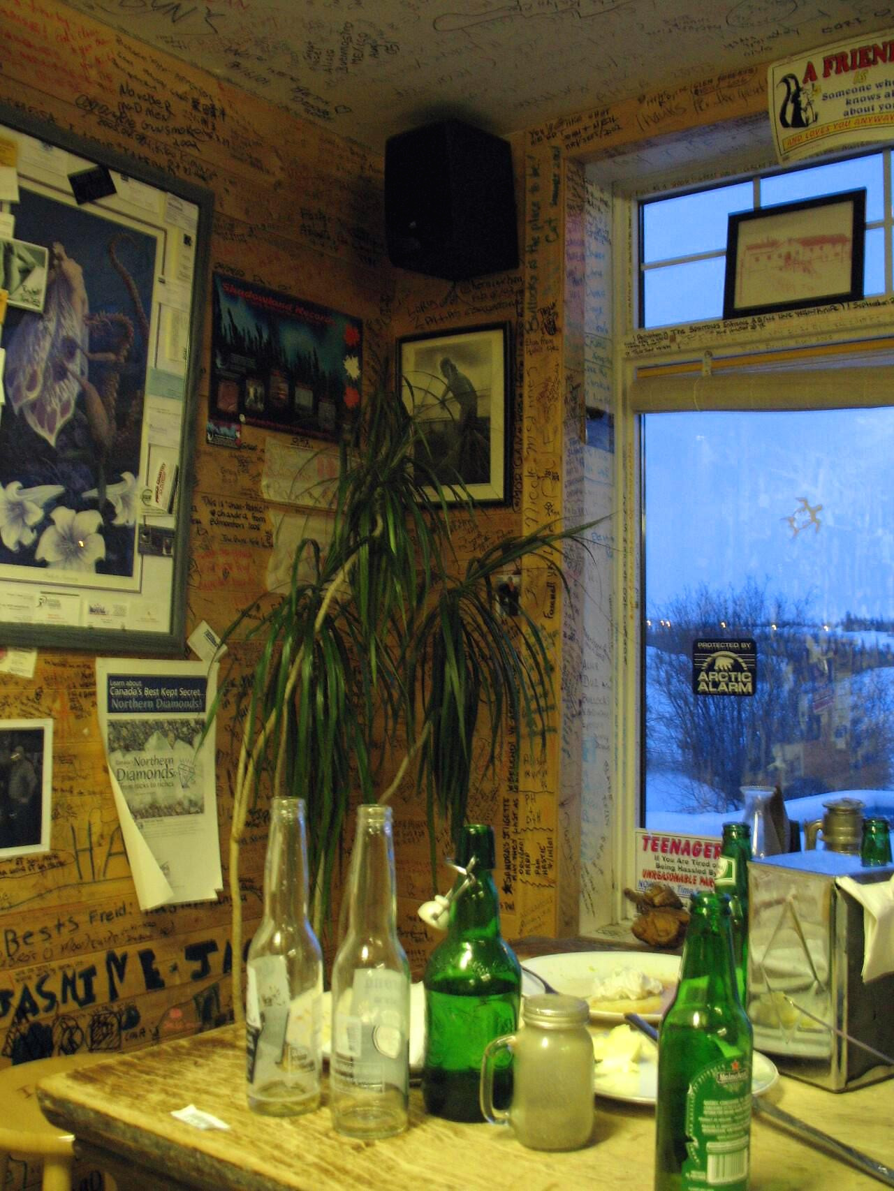 불록스 비스트로 Bullock's Bistro. 올드타운 초입에 위치한 식당으로 비스트로답게 작고 아담하며 굉장히 캐주얼한 분위기를 마구 뿜어내는 곳이다. 옐로나이프에서 5개월을 살았지만 같은 식당에 두 번 가본 적이 없을 정도로 외식을 할 기회가 많지 않았다. 다들 워홀러들이라 돈을 쓰는 것보다는 버는데 혈안이 되어 있었고, 그렇게 번 돈은 아껴서 여행에 쓰고 싶어 했던 탓인 것 같다.
