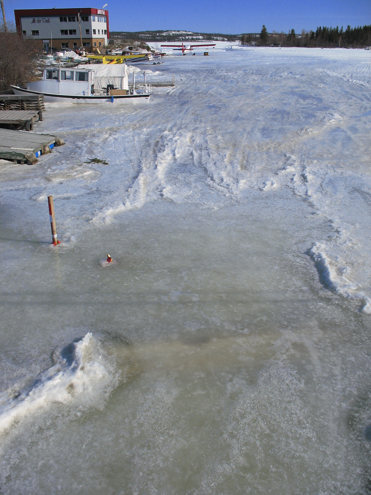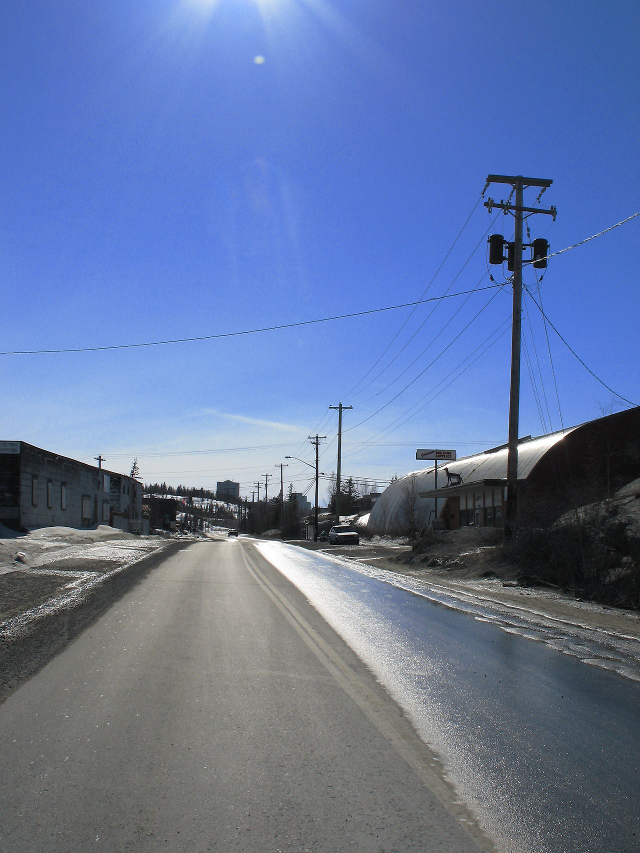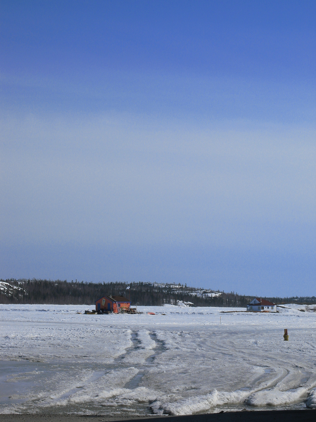 부서지는 태양 아래 검게 드러난 도로. 길가에 눈이 녹아 만들어진 물 웅덩이가 꽤 깊었다. 일을 마치고 걸어서 집으로 돌아가는 길목마다 영원할 것 같던 눈의 후퇴를 목격했다. 끝없이 펼쳐져 있어 바다가 아닌가 착각이 들게 했던 그레이트 슬레이브 호수의 가장자리도 녹아서 슬러시처럼 변했다. 밟아보면 아삭아삭 사각사각 팥빙수 파먹는 소리가 난다. 이제 스키두는 더 이상 호수 위를 신나게 달릴 수 없겠지.
