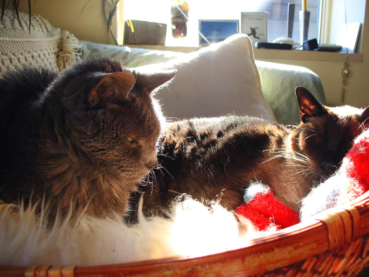 한참을 걸어 집에 도착하면 그늘에 들어온 게 조금 다행스럽게 느껴질 정도였다. 열심히 걸어서 인지 약간 땀이 스민 외투를 벗으며 집으로 들어갔다. 고요한 거실 소파 위에 고양이 두 마리가 꾸벅꾸벅 졸고 있었다. 회색의 시드니와 짙은 갈색 무늬가 있는 모카. 창문으로 따사롭게 내리는 볕 아래 누워서 이내 코오- 단잠에 빠졌다. 두 마리 다 나이가 많은 어르신들이라 나는 예의 바르게 고양이 걸음으로 살금살금 나의 작은 다락방으로 올라갔다.