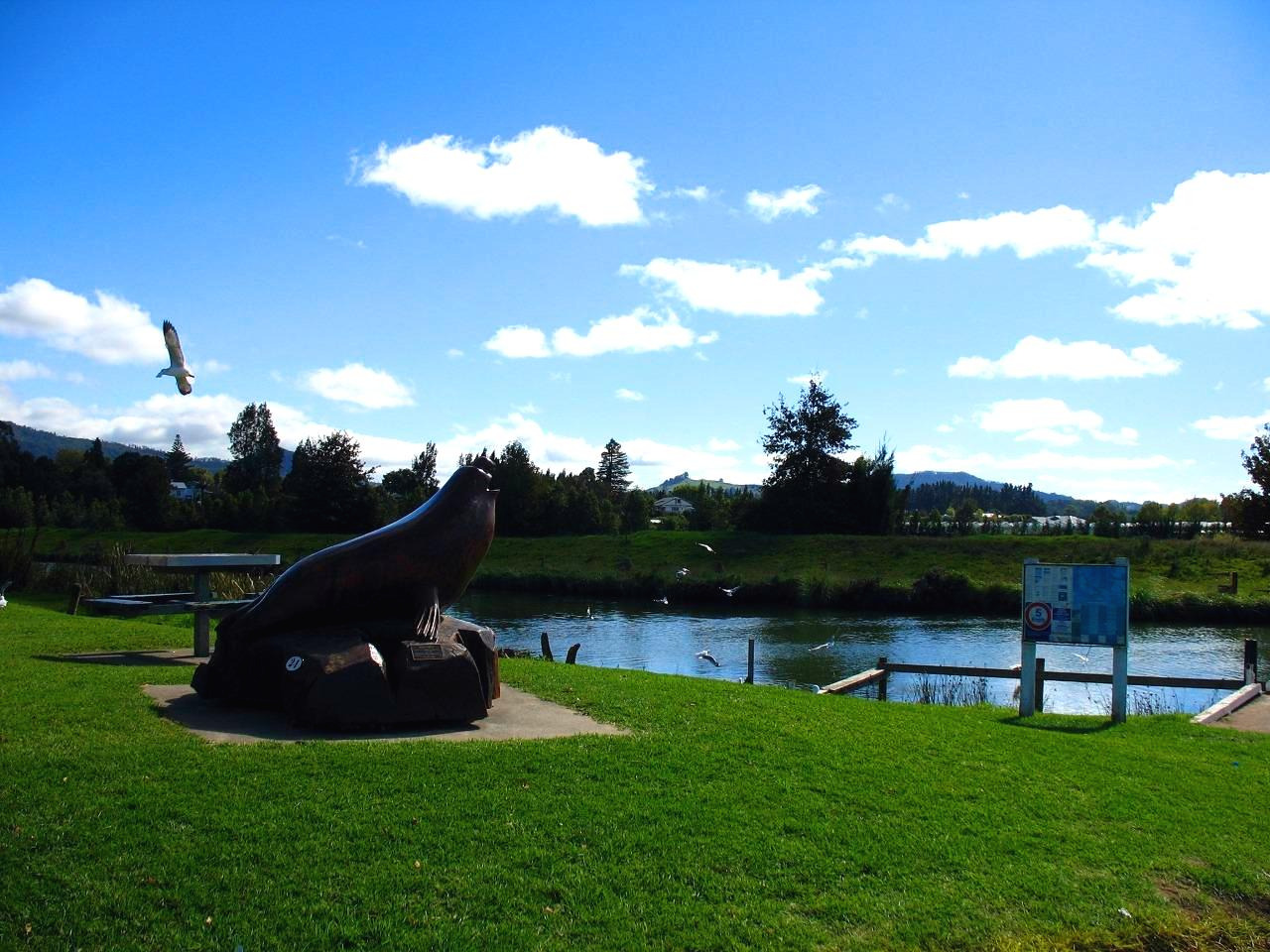구름이 낮은 건지 하늘이 높은 건지. 전깃줄 따위 걱정하지 않아도 되는 뉴질랜드의 나무는 크고 웅장했다. 햇살이 잎사귀에 부딪혀 빛나고 바람이 불면 물결처럼 유연하게 움직였다. 햇살은 흐르는 강 위에도 공평하게 부서져 내렸다. 반짝반짝 빛나는 강을 따라 걷다 보니 어느새 파크 로 Park Road 끝에 있는 공원에 도착했다. 꽤 멀리까지 나와 버렸네.