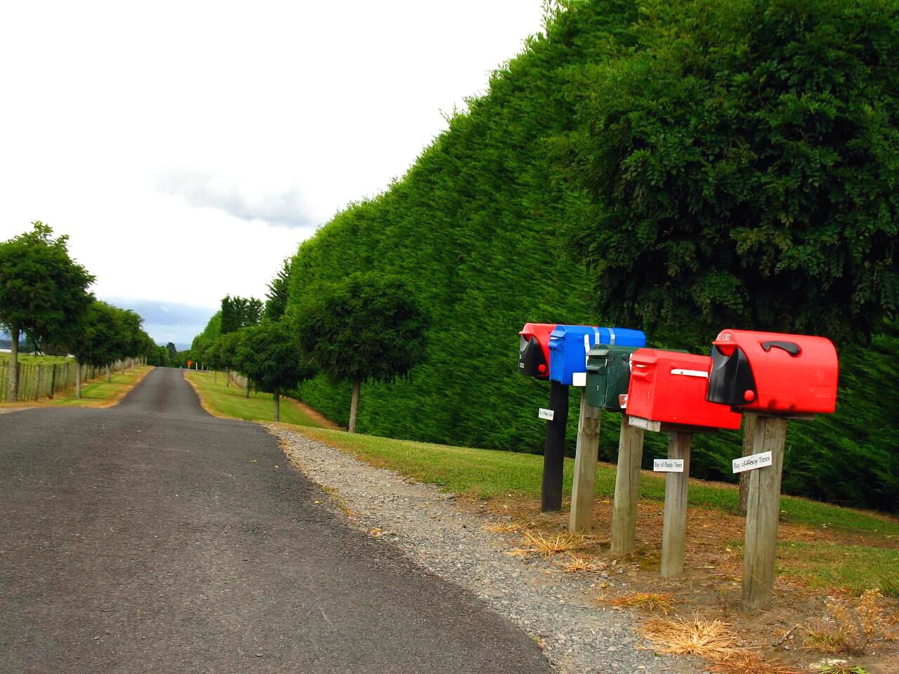 아, 길가에 이렇게 심어놓은 나무들이 키위 과수원의 울타리 역할을 하는가 보구나. 자연친화적이고 좋은걸. 다시 아무도 없는 평일 낮의 도로를 걸었다. 귀여운 우체통 무리와 마주치기도 하고, 또 다른 키위 과수원을 발견하기도 했다. 구름은 낮았지만 다행히 비는 오지 않았다.