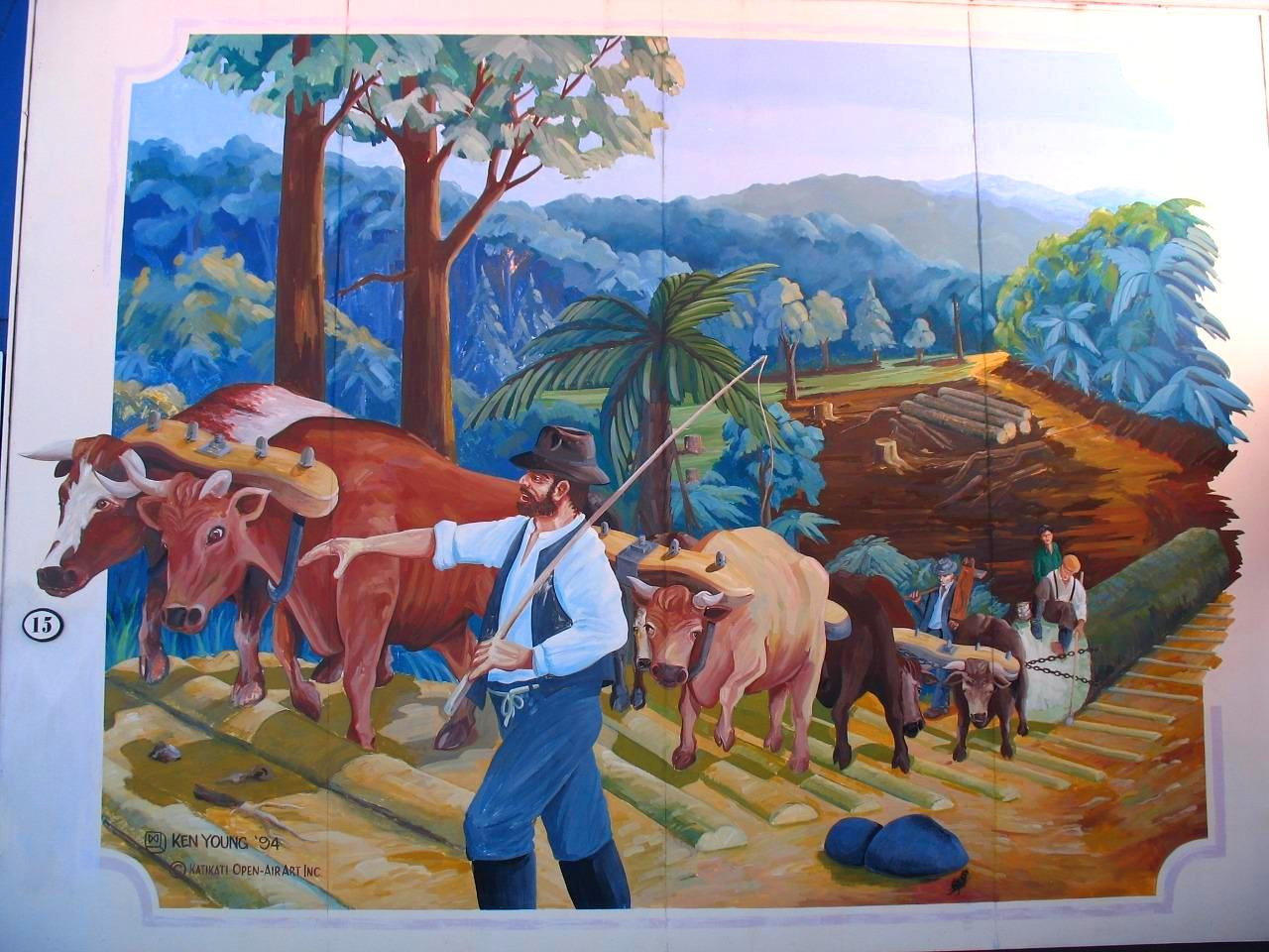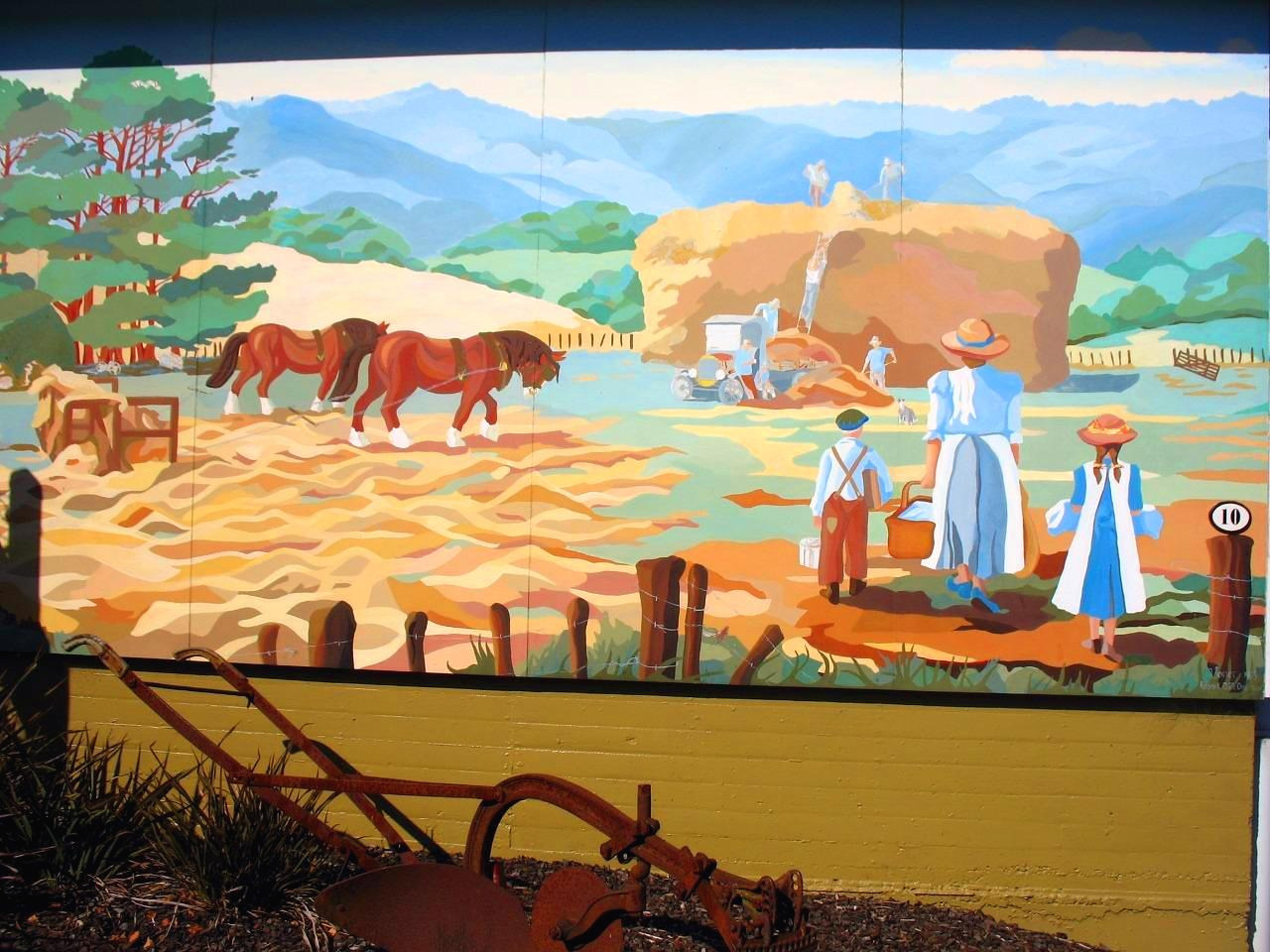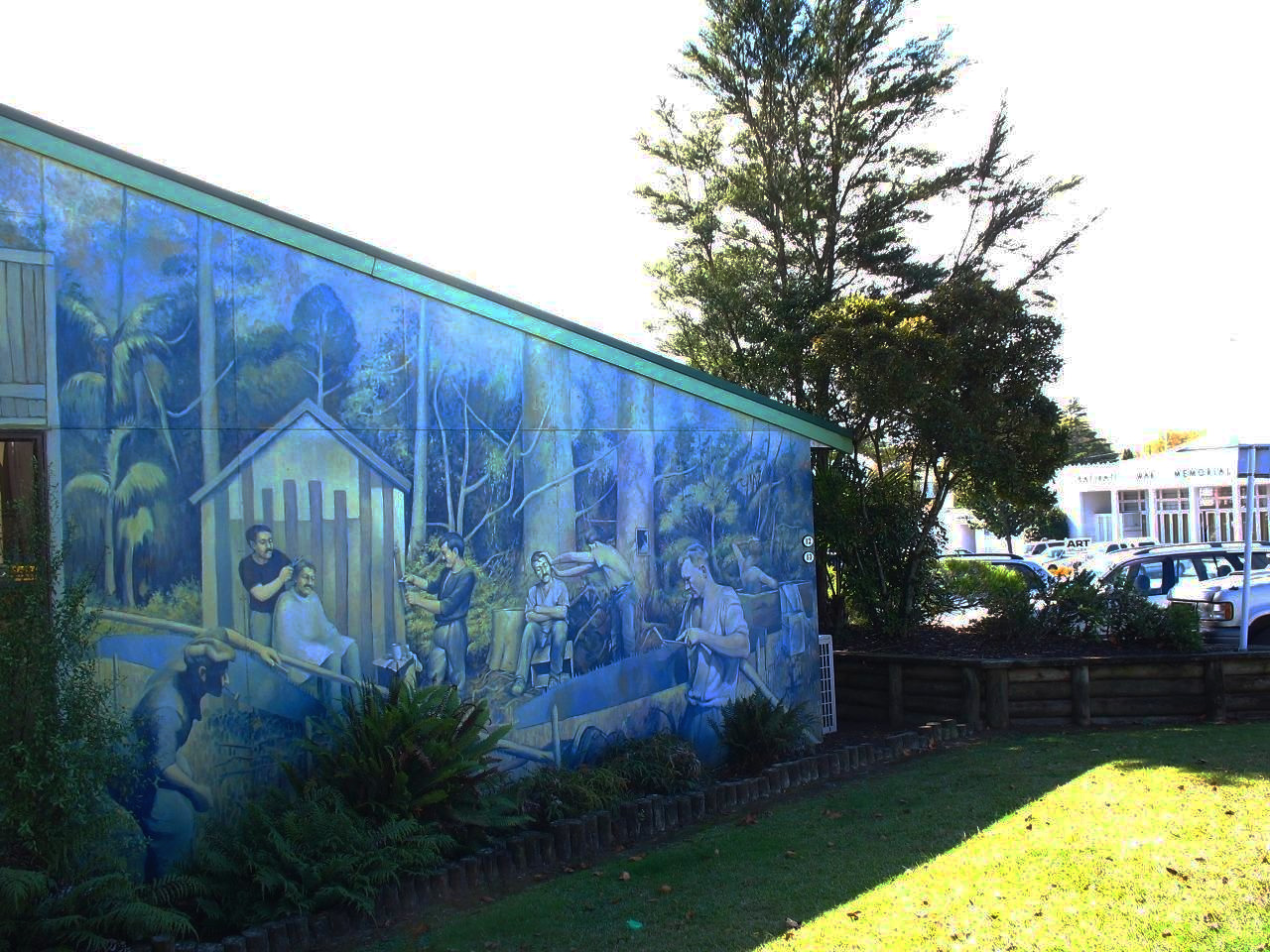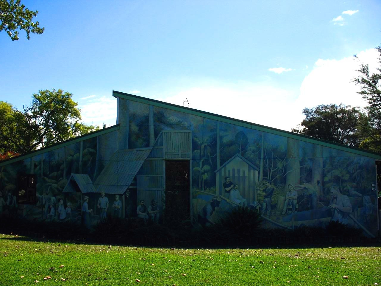 카티카티는 작은 마을이지만 벽화 하나만큼은 뉴질랜드의 그 어떤 도시보다도 많다. 뉴질랜드의 벽화 마을 Newzealand’s Mural Town 이라는 자부심도 대단한 것 같다. 마주 오는 사람도 드문 이 작은 마을 구석구석에 역사적인 그림들이 가득하다. 정착하던 시기 사람들이 어떻게 지냈는지 보여주는 그림들이라, 그 당시 풍경이나 옷차림, 오래된 차와 동물들을 보는 재미가 쏠쏠하다.