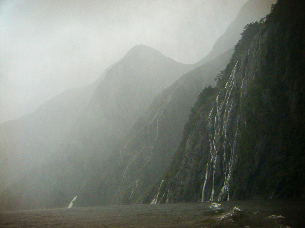 시간이 지나 생각해보면 애틋하고 특별하지만, 경험하는 당시에는 조금은 속상하고 약간은 화가 나는 경우가 있다. 이 크루즈가 꼭 그랬다. 지금에 와서 보면 그렇게 특별할 수가 없다. 다들 똑같이 판에 박힌 아름다운 경관을 보고 돌아가는 곳에서, 우리는 회오리가 치고 폭포가 거꾸로 솟아오르는 잔뜩 심술 난 밀포드 사운드의 면모를 보았다. 그저 그런 관광지가 아니라 물로 뺨을 맞았던 평생 기억에 남을 곳이 되었다. 와우.