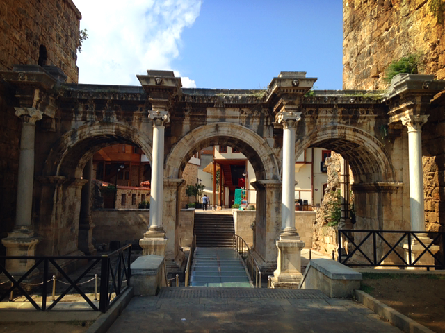 파묵칼레 행 버스표를 예약하고 천천히 걷다가 찾은 히드리아누스 문. 130년에 로마 황제 히드리아누스의 방문을 기념하는 문이다. 2천년 가까이 저대로 있다는게 신기하다.