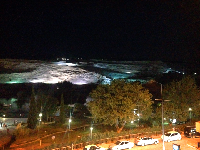 파묵칼레 버스 승무원 아저씨가 친절하게도 버스가 있다고 알려줘서 무사히 파묵칼레 도착. 호텔 옥상에서 밥을 먹으면서 건너편 석회봉을 바라본다. 아, 내일이 기대된다!