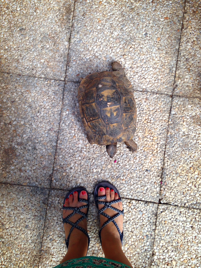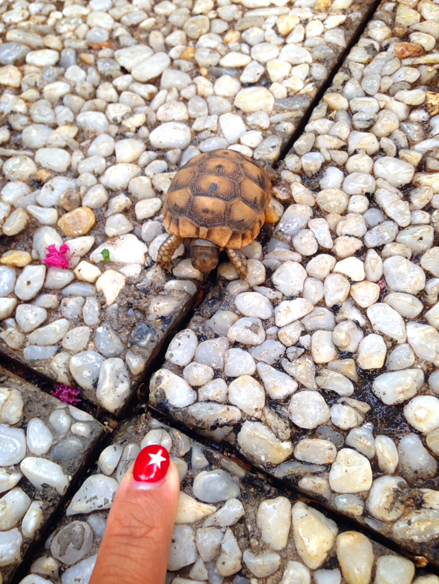 호텔 직원 아저씨가 큰 거북이를 번쩍들어 데려간다. 거북이도 아침 먹을 시간. 몇 살이냐고 물어봤더니 모르겠지만 엄청 많을 거란다. 요녀석은 태어난지 2주된 아기 거북이.