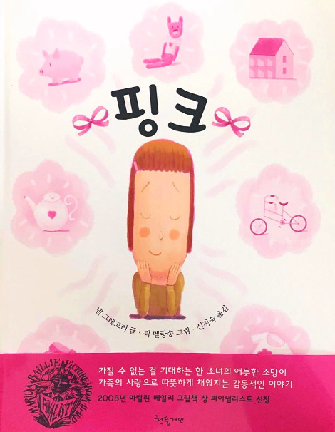 밋밋하고 평범한 이야기 가운데 작지만 특별한 어떤 것이 기억을 건드릴 때, 그게 마치 내 이야기인 것 같이 느껴져 그 이야기를 좋아하게 됩니다. <핑크>는 제게 그런 책인 것 같아요. 작가의 자전적인 이야기도 아니고, 내 이야기와도 같지 않지만(제 엄마 아빠는 저렇게 다정스럽지 않았지요) 마치 나에게 하는 이야기인양 읽게 되는.