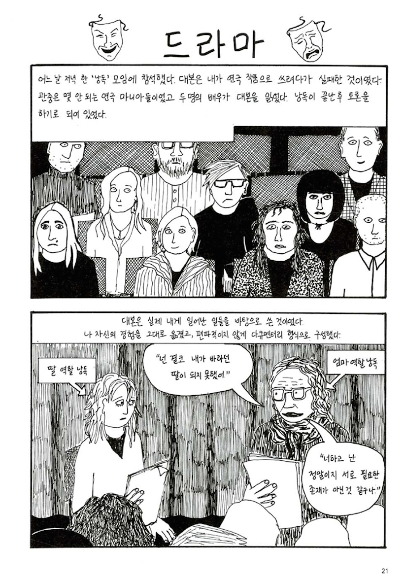 이 책을 읽은 뒤 그 사람과 만난 날, 우리는 깔깔거리면서 이 책 이야기를 했고 서로 어느 부분이 좋았는지 무엇이 자신의 이야기와 똑같았는지 말했어요. 주로 나는 듣고, 그 사람이 말했지만요. 그 사람은 "나처럼 이 책이 '자신들의 이야기를 옮긴 것'이라고 생각하는 사람이 세상에 많다는 게 더 놀라워"라고 말했어요.