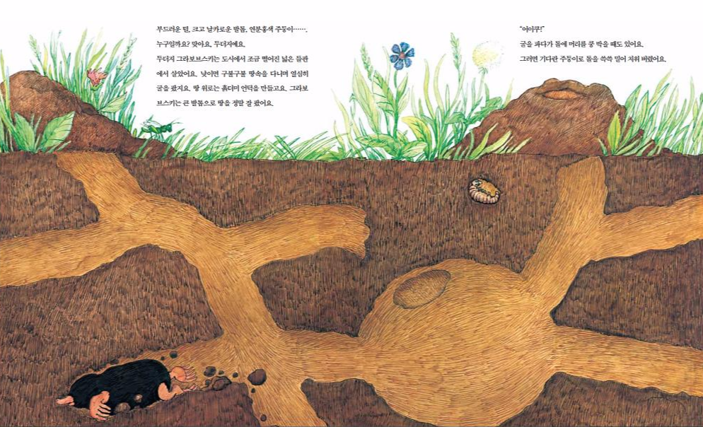 루이스 무르셰츠 할아버지는 어떻게 알았던 걸까요? 두더지를 계속 외면한다면 결국 우리 삶이 두더지의 삶과 같아질 거라는 것을. 두더지의 삶을 지키는 것이 우리 삶을 지키는 것이라는 사실을요.