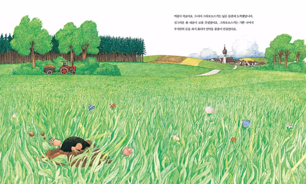 결국 그라보브스키는 새 보금자리를 찾았어요. 싱그러운 풀과 부드러운 흙이 있는 들판에 도착한 거예요.