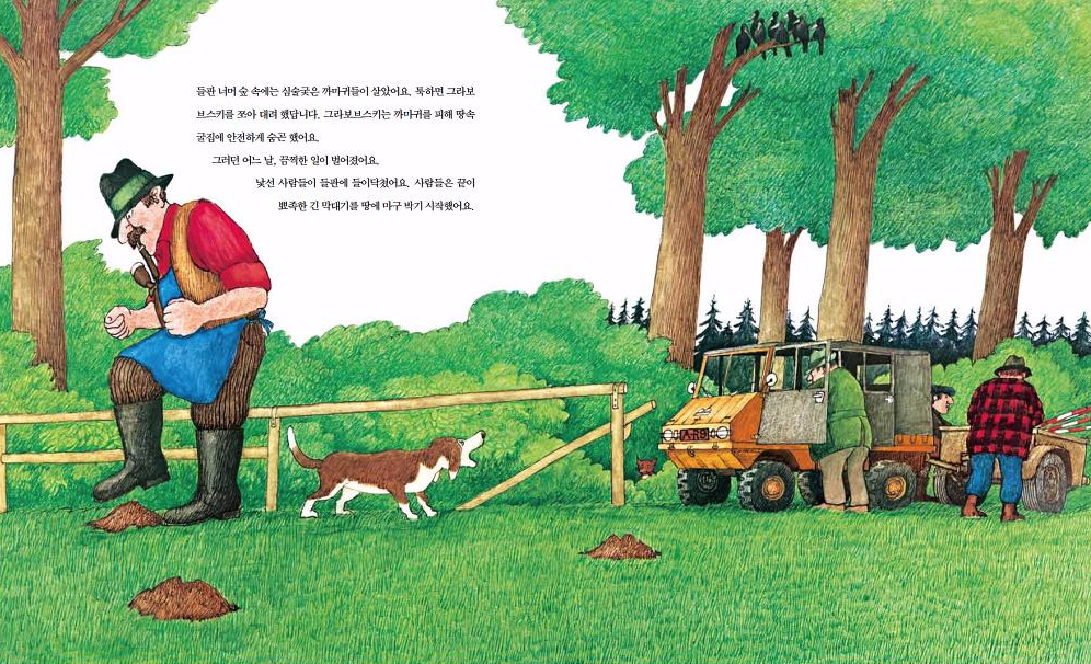 무시무시한 바퀴와 커다란 발톱 괴물이 그라보브스키의 들판을 몽땅 파헤치고 말았어요. 그라보브스키는 바퀴를 피해 겨우 땅 위로 나왔지만, 이제 커다란 발톱 괴물이 그라보브스키를 삼키려고 해요.