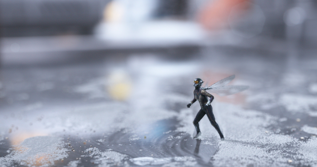 흠결도 수두룩하다. 빌런, 즉 악당이 너무도 미미해서 갈등으로 달구어지지가 않는다. 전편의 ‘꼬마기관차 토마스’를 대체할 ‘헬로 키티’가 등장하지만 강렬하지 않다. 무엇보다 제 몸무게의 50배를 드는 능력자인 개미들의 존재감이 약해졌다. 전편에서 유령개미, 총알개미, 왕개미, 불개미가 자신의 특기를 발휘해서 앤트맨과 활약했다면, 이번 편에서는 의인화된 개미들로 여겨질 만큼 인간의 역할을 대신했다. 파트너 와스프의 등장으로 분량이 줄 수는 있지만, 개미로서 줄 수 있는 재미가 줄어든 지점은 못내 아쉽다.