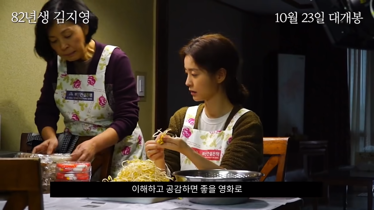 그 순간 나는 사실 며느리 김지영에게 감정이입 되었다기 보다, 배우 정유미에게 진심으로 감탄해 '아아' 소리가 튀어나왔다. 노곤한 새벽 시어머니의 의외의 선물을 받아들며 불안과 기대가 뒤섞인 눈빛, 그녀의 취향이 아닐 게 뻔한 꽃무늬 방수 '사은품' 앞치마를 마치 진심으로 좋아하는 듯 말하는 '어색한' 자연스러움 - 어쩔 줄 모르겠는 찰나의 망설임까지 어떻게 그렇게 실감나게 표현할 수 있을까?