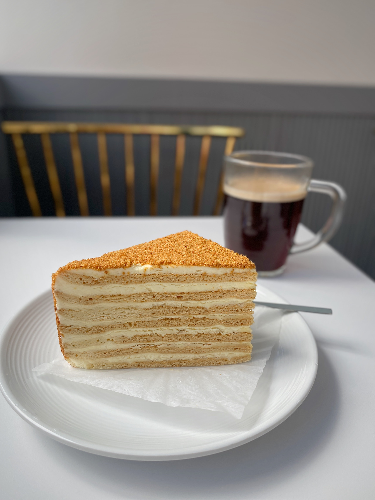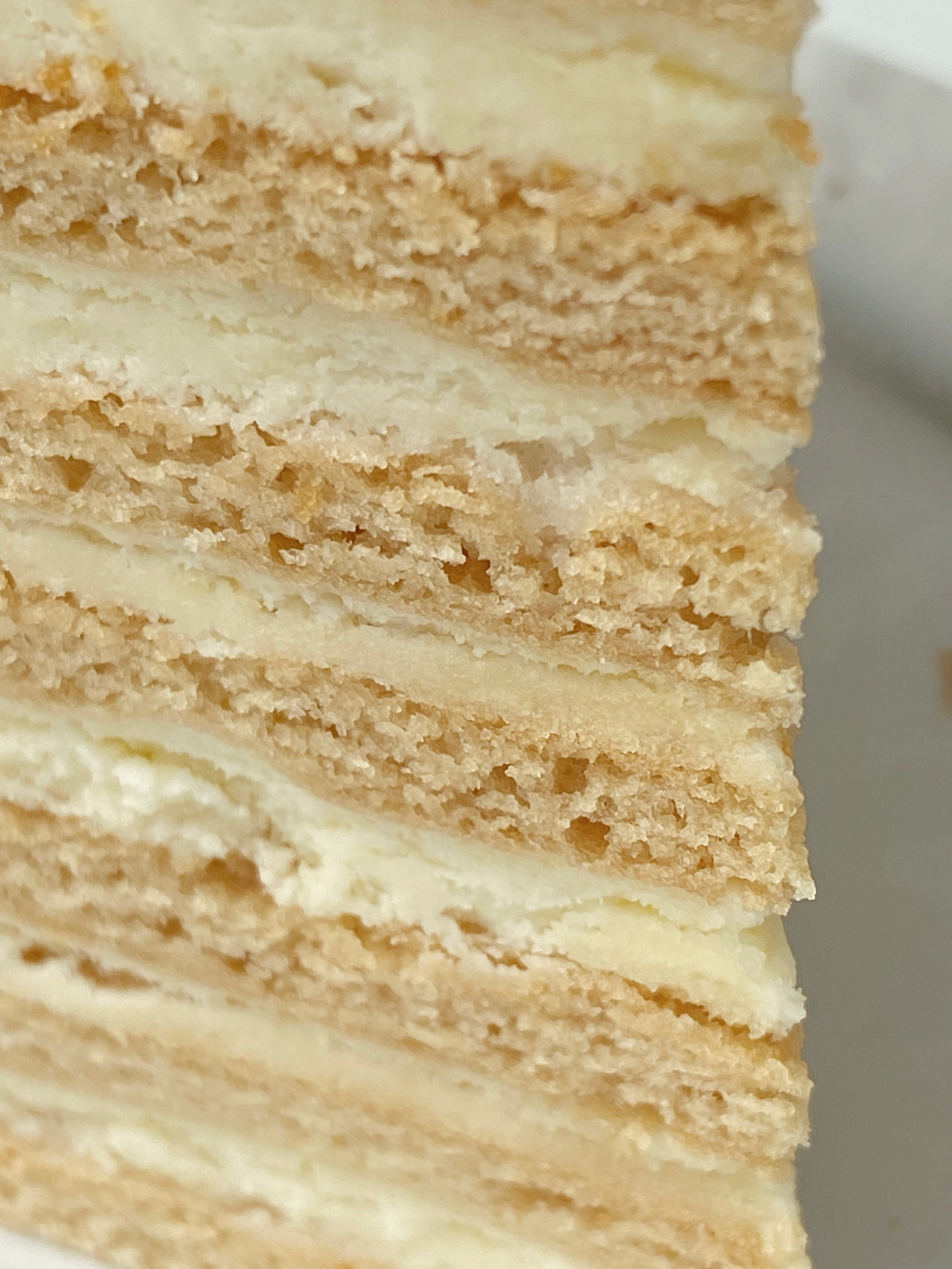 메도빅은 꿀이 들어가 굉장히 촉촉했다. 얇은 케이크 시트 사이에 크림을 발라 층층이 쌓아 만들어 크레이프 케이크도 떠올랐는데 세상에 만드는 방식도 비슷하다. 제누와즈를 구워 얇게 자르는 게 아니라 한 장씩 낱장으로 구워내는 케이크다(갑자기 만들기 싫..).