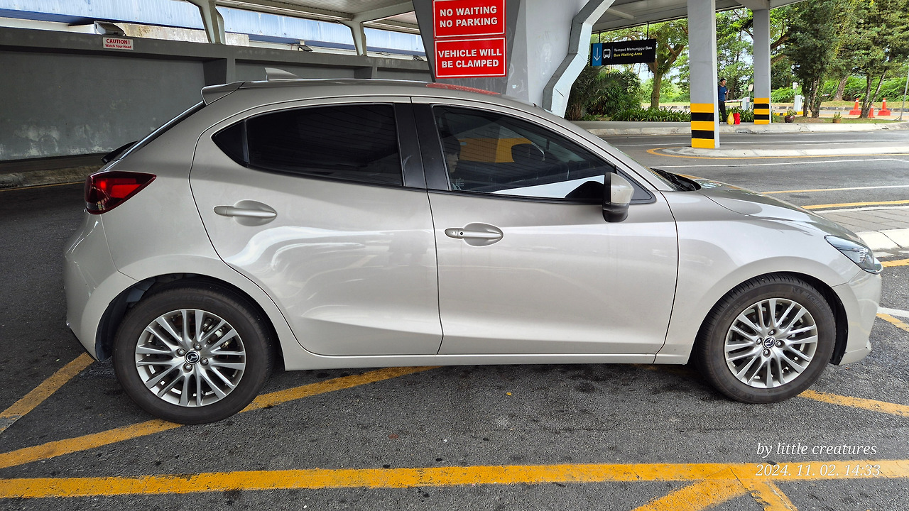 마즈다 ‘23년형이라고 해서 아주 깨끗한 차를 기대했는데, 약 5만 킬로를 주행한 평범한 차량이었고, 소형차라서 트렁크에 골프채가 들어가지 않아 뒷자리에 싣고 다녔다.