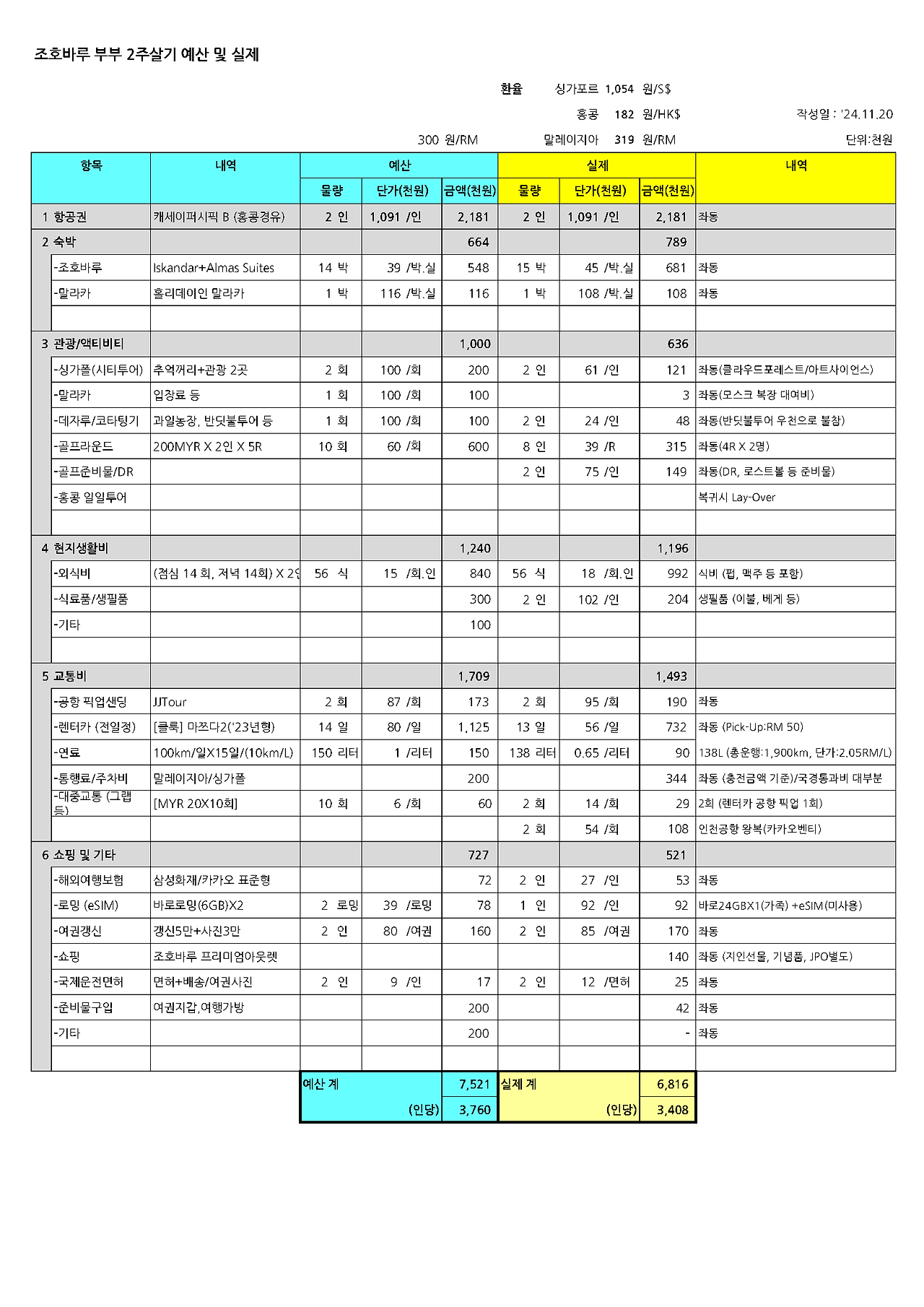 [현지생활비] 120만원 (식비 100만원 / 생활비 20만원)
