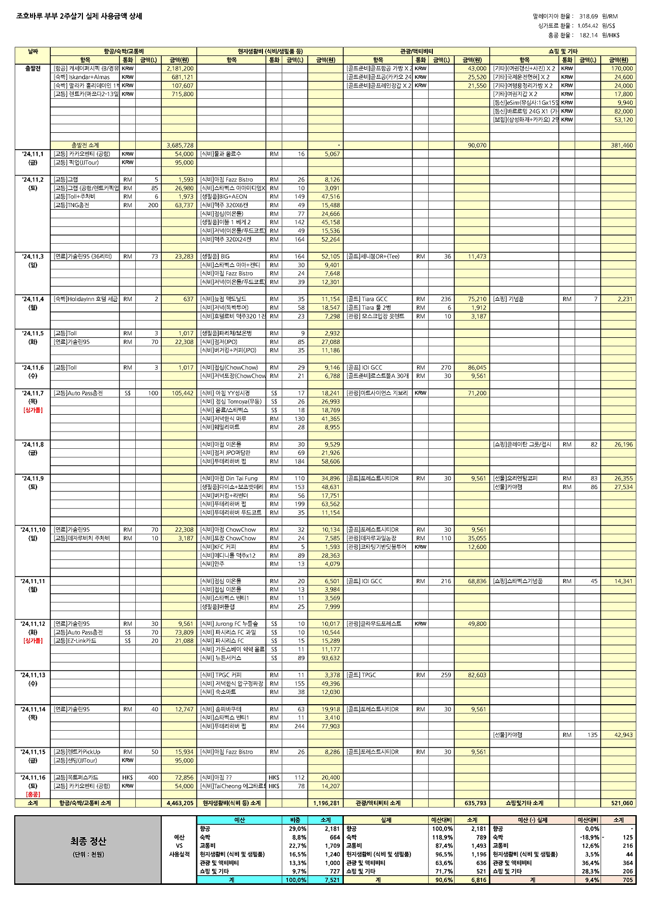 [교통비] (약 34만원, <연료비 9만원, 톨비/주차비 25만원(JB:7만원/SG18만원)>)