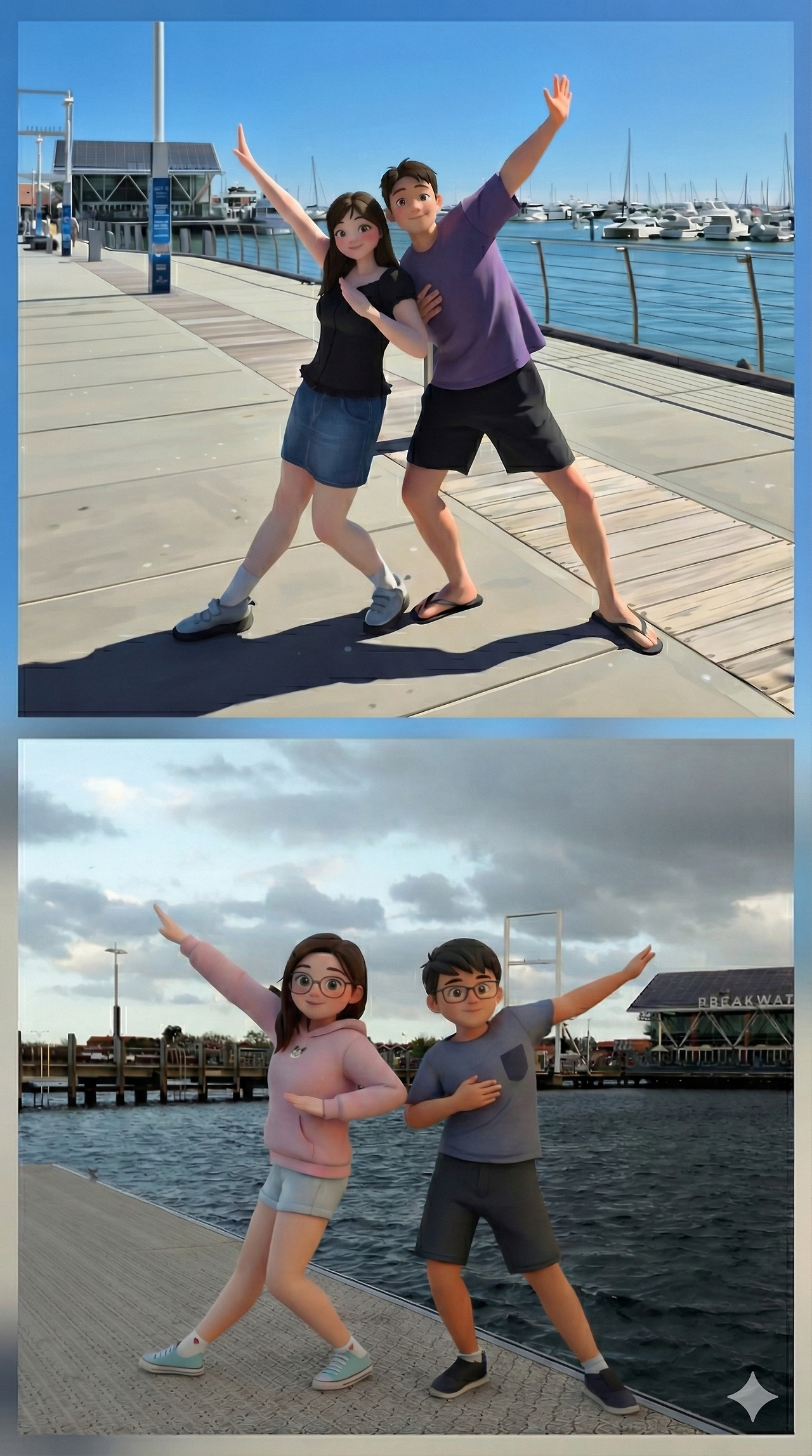 퍼스는 가족들의 “추억 따라가기”로 계획하였는데 실제로 가보니 변한 곳이 크게 없어 더 반가웠고, 딸과 아들의 협조로 요새 유행하는 재연사진 몇 장을 건져왔다.