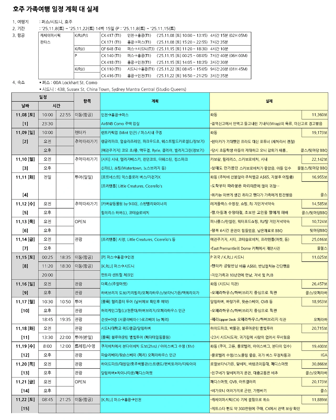 총 14박 15일로 퍼스 7일 시드니 7일 일정이다.