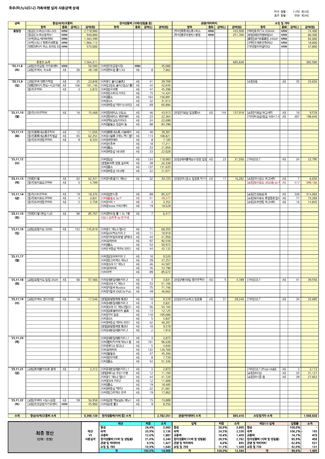 환율상승이 이번처럼 피부로 느껴지기는 처음이다. 호주에서 환전한 A$ 5,000과 아고다에서 후불로 예약한 숙소의 환전 차이 금액 등이 약 53만원이나 되었다. (’25.6/7월의 환율은 넉넉하게 약 900원이고, ’25.11 실제 환전 환율은 약 958원이다.)