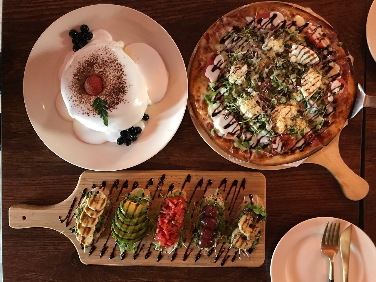 ‘느슨’에서 자신 있게 선보이는 인기 메뉴는 바로 수플레 케이크와 부르스케타, 그리고 샐러드 피자다. 손수 만드는 수플레 케이크는 폭신한 팬케익에 생크림이 올라가 있어 사진 찍기에도 좋고 부드러운 맛이 일품이다. 브루스케타는 바삭하게 잘라 구운 빵에 아보카도, 새우, 토마토 등을 얹어 만든 요리로 한입에 먹기 좋은 와인 안주다. 느슨 표 샐러드 피자는 얇은 도우에 상큼한 샐러드와 치즈가 올려져 있어 달달한 맛이 입안을 즐겁게 했다.