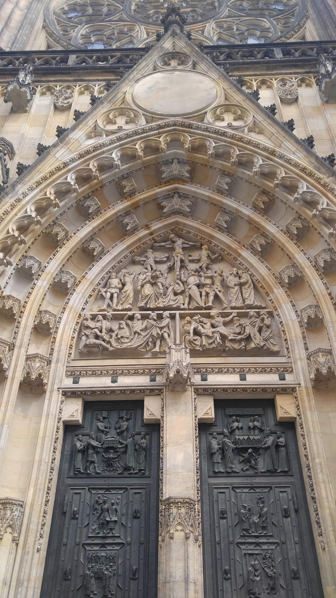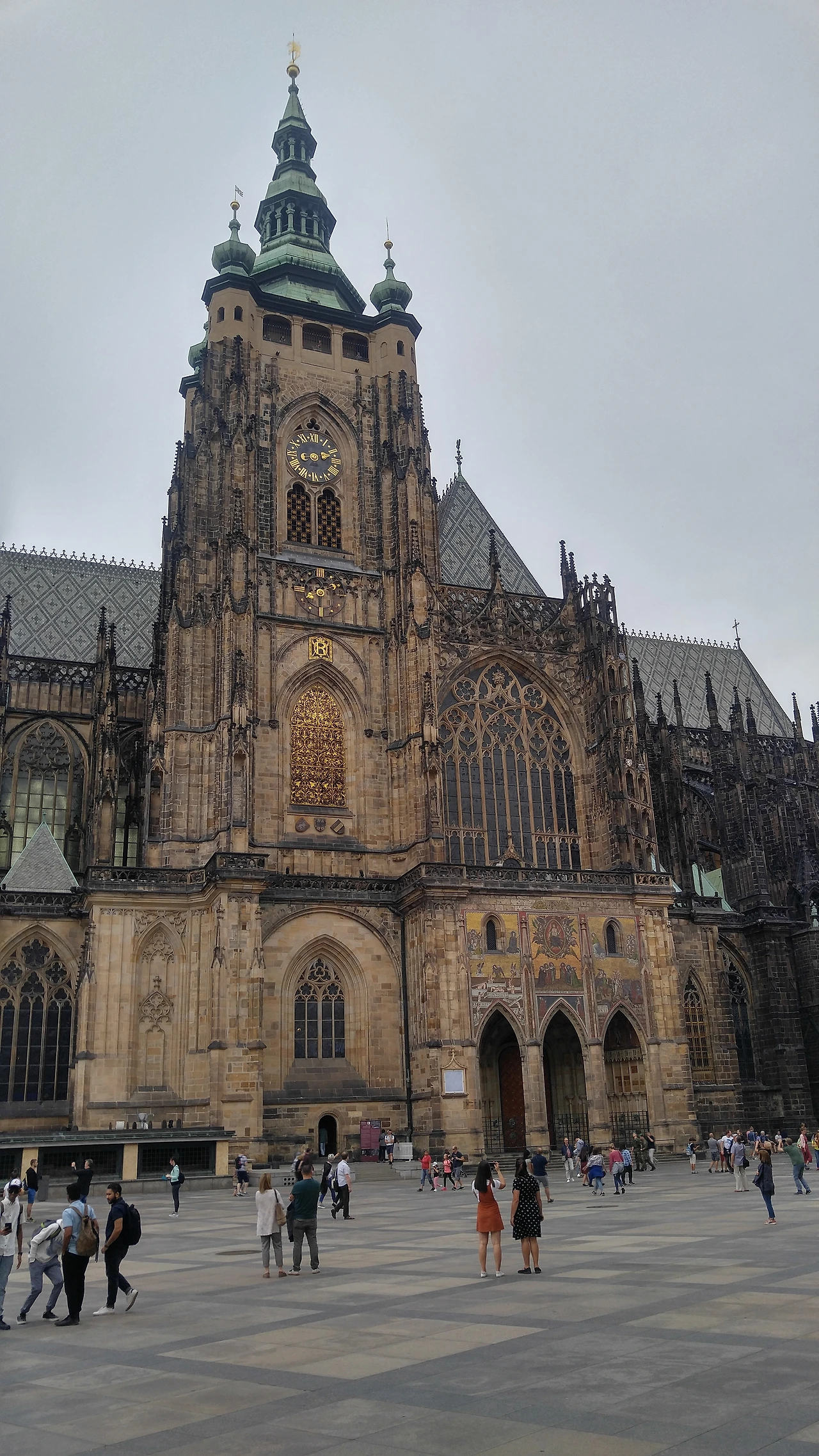 성채 안에 들어서자마자 보이는 건물은 성 비투스 대성당이다. 1344년에 착공해 재건축을 거듭하다 지금과 같은 모습으로 완성한 건 1929년이라고 한다. 성당 건물은 웅장하고 내부는 아름답다. 성당 앞에서 포즈를 잡아 보지만 워낙 큰 건물이라 구도를 잡기가 쉽지 않다. 누군가 사진을 찍어 주었지만 성당의 첨탑까지 담으려는 욕심과 인물을 놓칠 수 없다는 당위를 만족시키긴 어려웠다. 우리가 찍어준 사진도 이렇듯 비스듬히 기울어진 것 같은 구도였을 것이다.