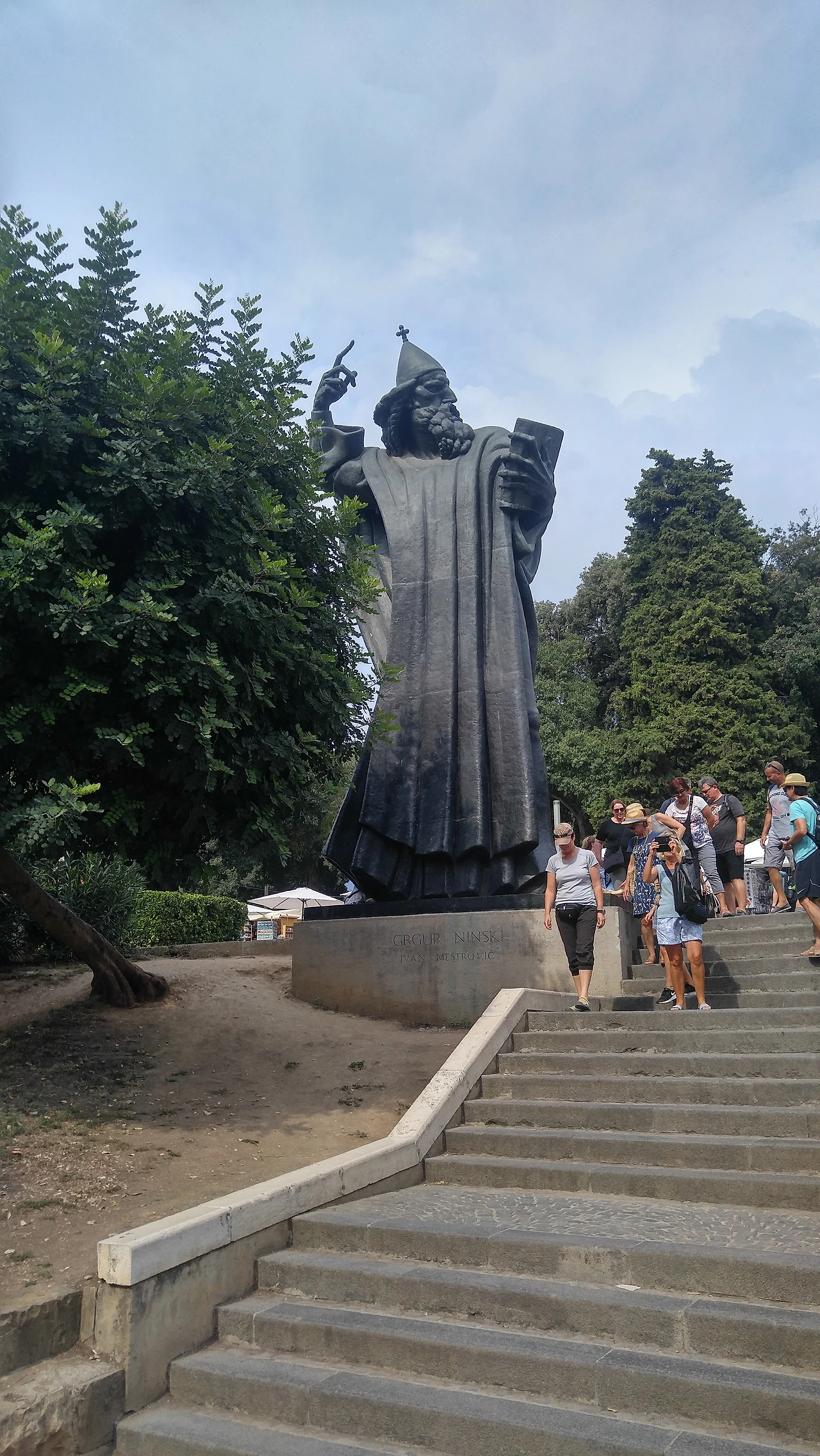 멀리에서부터 그레고리우스 닌 주교 동상이 보인다. 크로아티아어로 예배를 볼 수 있게 투쟁했던 주교라 크로아티아인들이 존경하는 인물이라 한다. 골든 게이트를 지나니 식당들이 보인다. 실내 디자인이 예쁜 피자집에 들어갔다. 아침부터 바쁘게 움직였는데 그제야 숨을 돌린다. 차양처럼 드리워진 포도 넝쿨이 낭만적이라고 생각한 것도 잠시, 갑자기 소나기가 쏟아진다. 익숙한 듯 그들은 그리 놀라지 않는다.