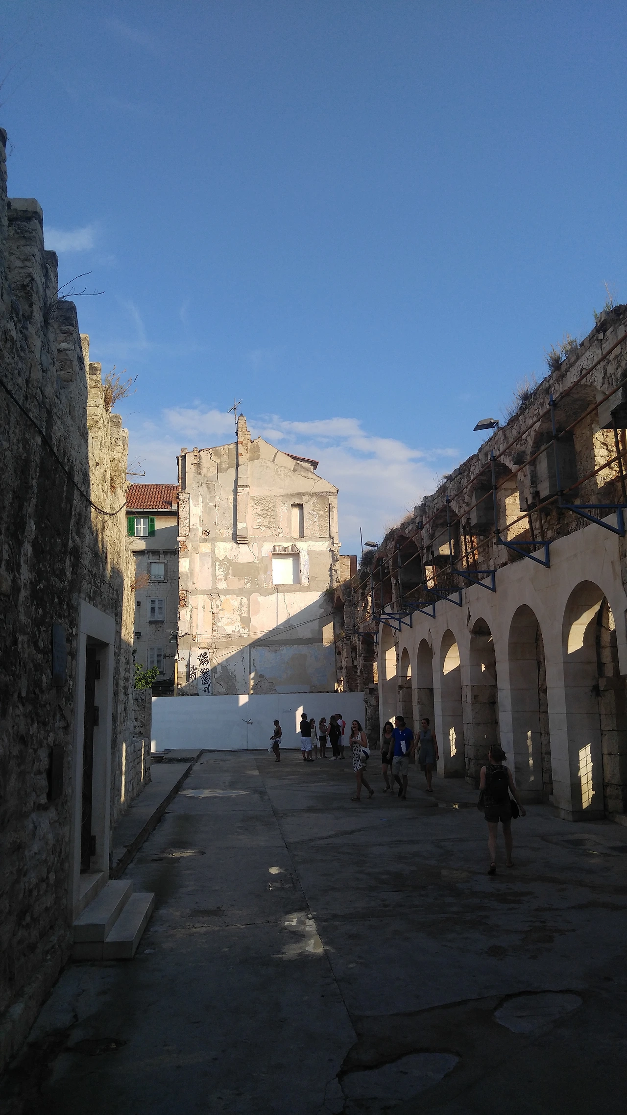 로마 황제 디오클레티아누스는 스플리트를 사랑했다고 한다. 이곳에서 여생을 보내겠노라고 마음먹고 10년에 걸쳐 궁전을 짓는다. 생각보다 일찍 생을 마감하는 바람에 6년밖에 누리지 못했다 하나, 자신의 바람대로 건물을 디자인하고, 무엇을 갖다 놓을까 구상하고, 어떤 식물들을 심을까 고심하였을 터이니 누릴 만큼 누리지 않았을까 싶다. 궁전 안으로 들어가면 열주 광장이 맞이하고 황제의 거주 공간이었던 아파트의 천장은 구멍이 뚫려 있는 원형 그대로 보존되어 있다. 아이러니하게도 궁전 옆에는 디오클레티아누스에 의해 죽임을 당한 성 돔니우스를 위해 지은 성당이 있다. 황제의 무덤이 있던 자리였다고 한다. 영원할 것 같은 황제의 영화가 한순간이듯, 궁전 외곽은 폐허 같이 쓸쓸하다. 그럼에도 지금을 사는 사람들은 또 그 역사적인 공간과 함께 공존하고 있었다.