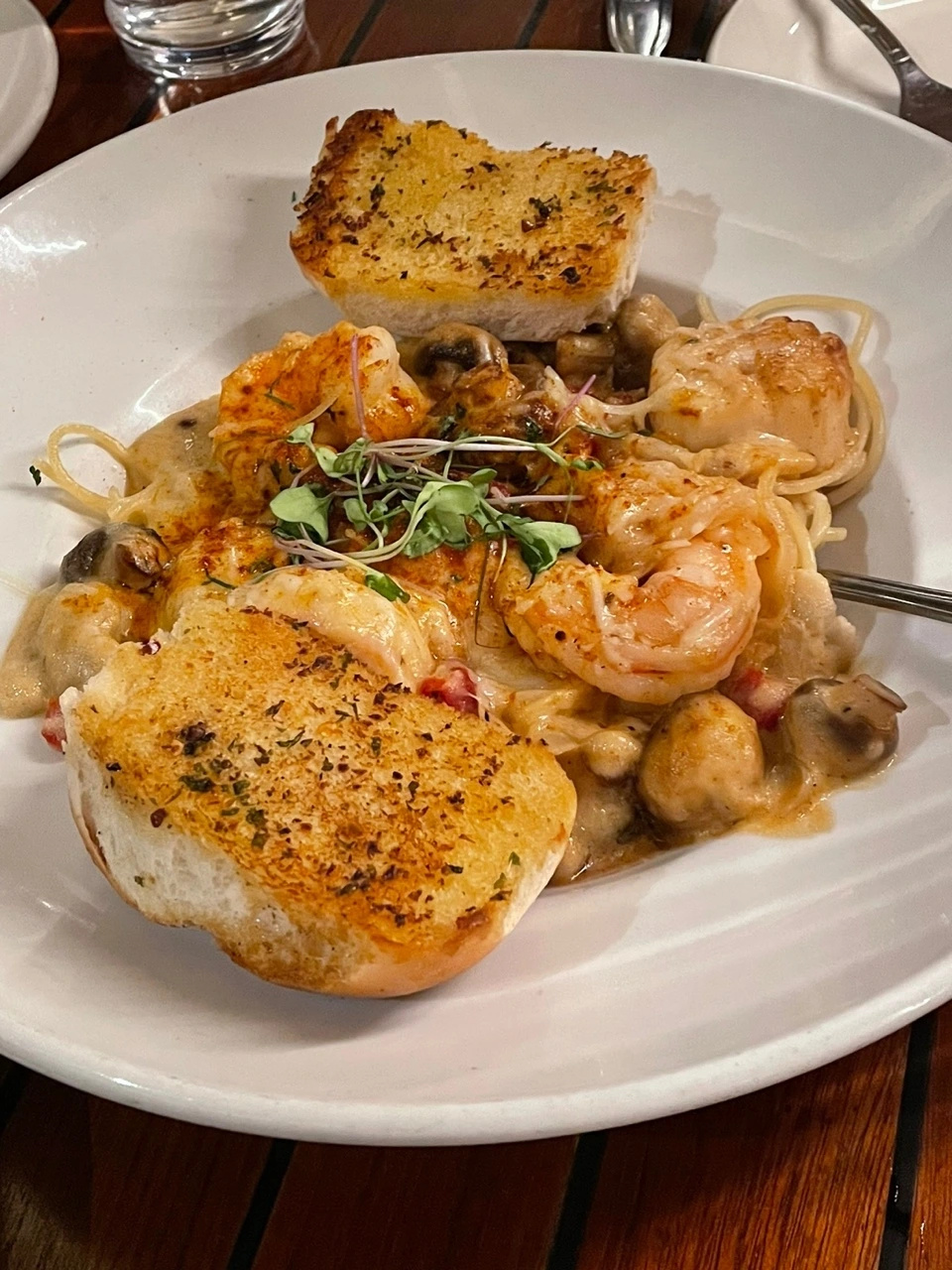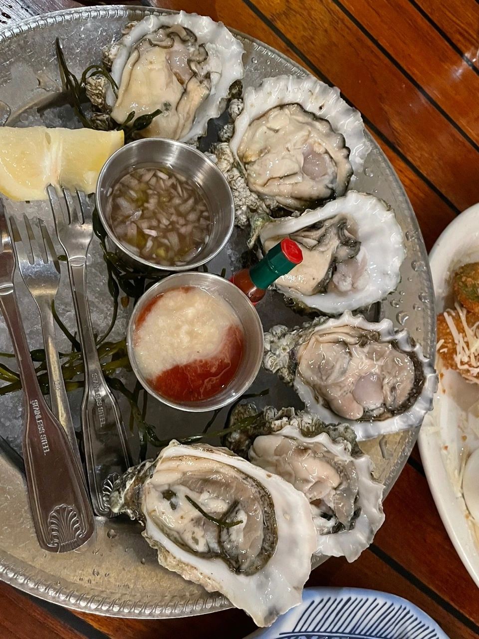 요리 중엔 의외로 Homestyle Fried Zuccini(축하주 옆 사진)가 맛있었다. 별것 아닌 호박의 변신이랄까. 우리나라 호박전과 달리, 두툼하게 썬 호박의 식감과 바삭한 튀김옷이 안주로 제격이었다.
