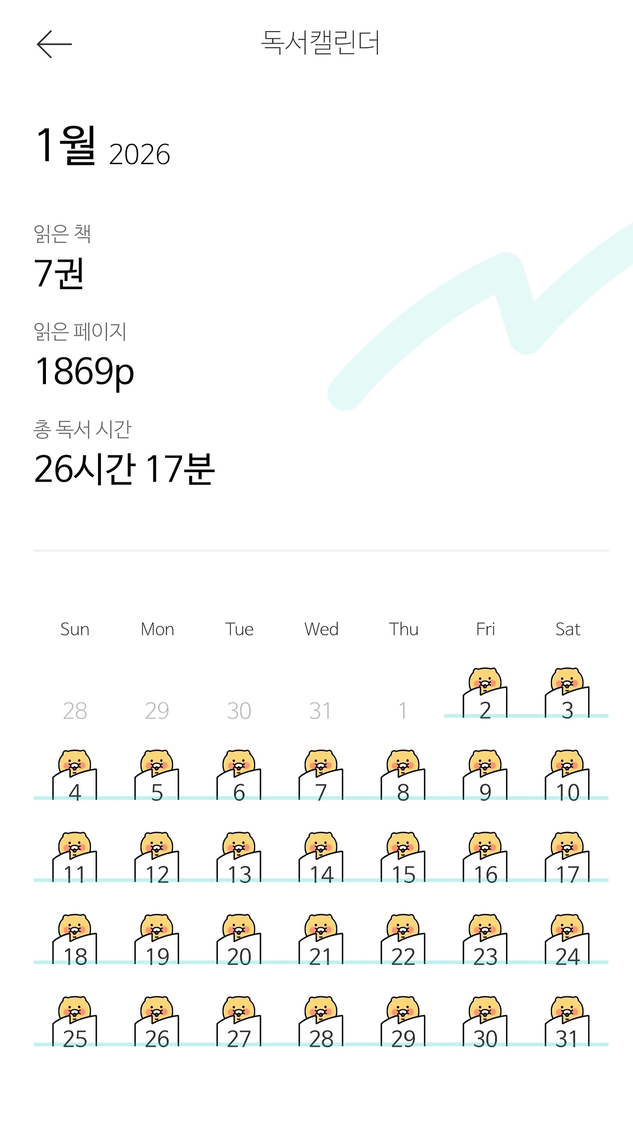 어설프게 시작했지만 챌린지 아닌가. 재깍재깍 타이머가 작동하는 듯한 긴장감 속에서 책을 읽는다. 처음엔 자주 멈췄지만 이게 은근 기록에 신경 쓰게 된다. 매일 더 많이 읽으려고 노력했다. 그리하여 1월 한 달간 총 7권의 책을 읽었다. 아마도 최근 내 기록이 아닐까 싶다. 보통 한 달에 서너 권의 책을 읽는데 은근한 강제력이 책을 더 많이 붙들게 했다. 그동안 더 읽을 수 있는 거였구나, 만날 글이 맘에 안 든다고 투덜대지 말고 책을 더 읽었어야 하는 거구나. 자연스레 나를 돌아보게 해 줬다.