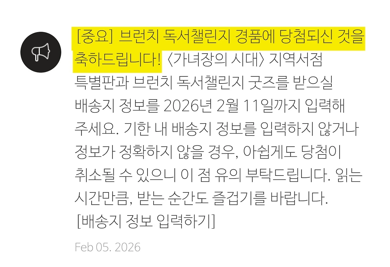 이제 본론으로. 지금 막 브런치 독서챌린지 경품이 도착했다. 당첨 운이 없는 내가 천 명 중에 뽑힌 것도 기쁘고, 이미 읽은 책이라 동생에게 선물할 수 있어 기분이 좋다. 지역책방 스페셜 에디션이니 희귀템인 셈이다.