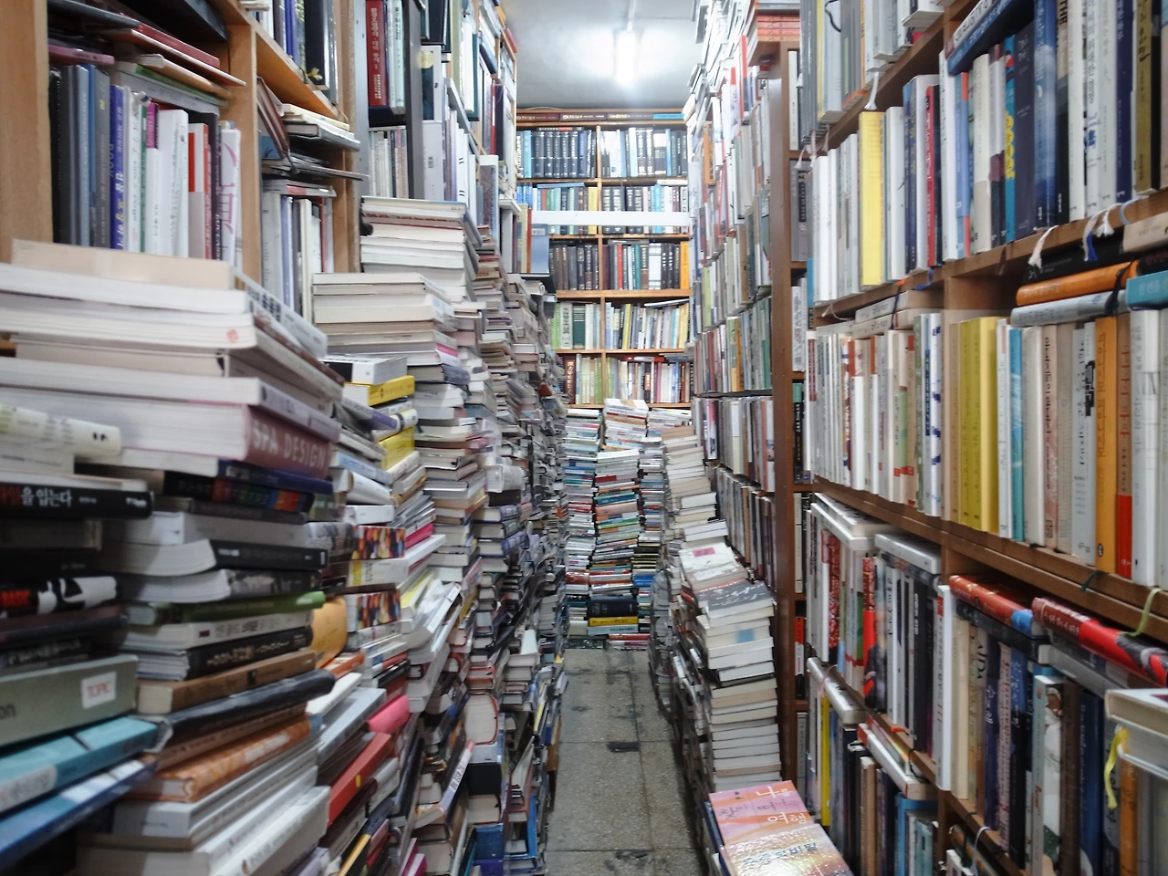 두 사람이 들어서면 버거울 정도로 좁아 보이는 책방이지만, 몇 명의 사람들은 좁은 통로의 헌책방 안에서 보물 찾기에 여념이 없다. 마치 시끌벅적한 바깥세상과 동 떨어진 곳에 정적과 책 넘기는 소리만 들리는 이 곳에 있으면 시간이 멈춘 듯한 느낌이 든다. ‘뭐 찾아요?’하는 헌책방 사장님의 물음에 필요한 것을 말하기만 하면, 위태하게 쌓여 있는 책들 사이로 필요한 책을 쏙쏙 찾아 내어 주신다.