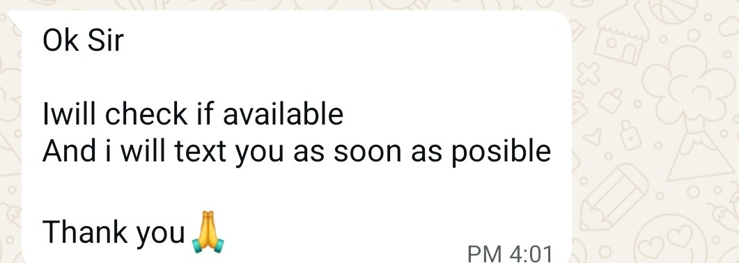 일단 알겠다며, 확인 후 최대한 빠르게(as soon as possible) 연락을 준단다. 가격을 너무 낮게 부른 건 아닌가 싶어 걱정했는데, 생각보다 반응이 나쁘지 않다.