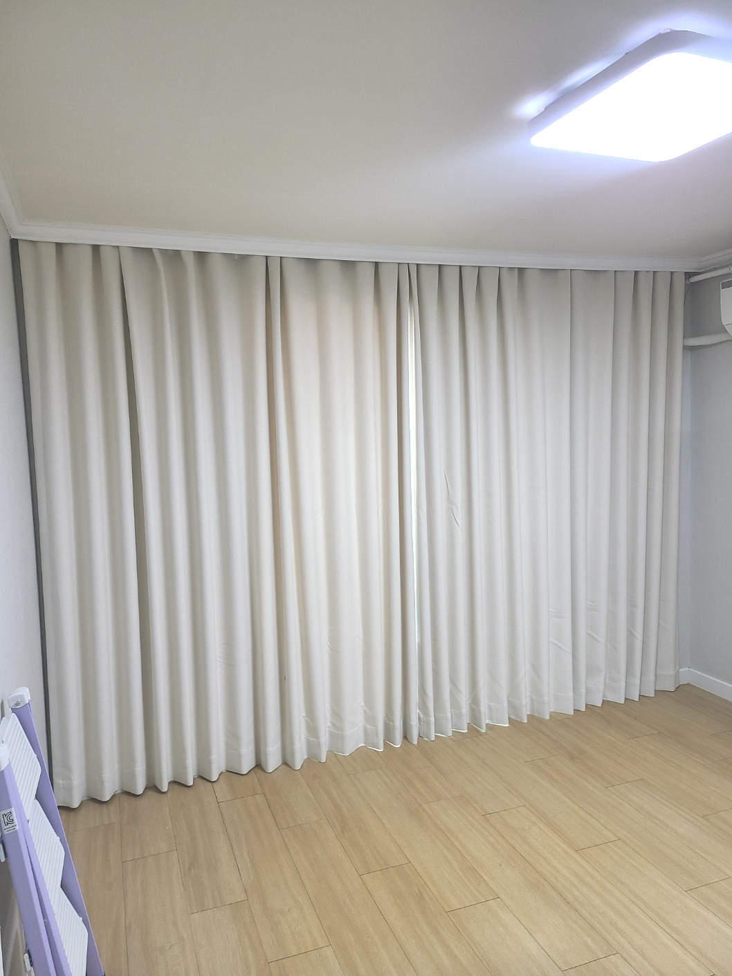 겨우 구매해서 받아본 커튼은, 멀리서보면 회색의 빛깔이 살짝 도는 것 같긴 했지만 가까이서 볼땐 아이보리가 맞았다. 기대했던 색상보다는 아니었지만, 괜찮았다.