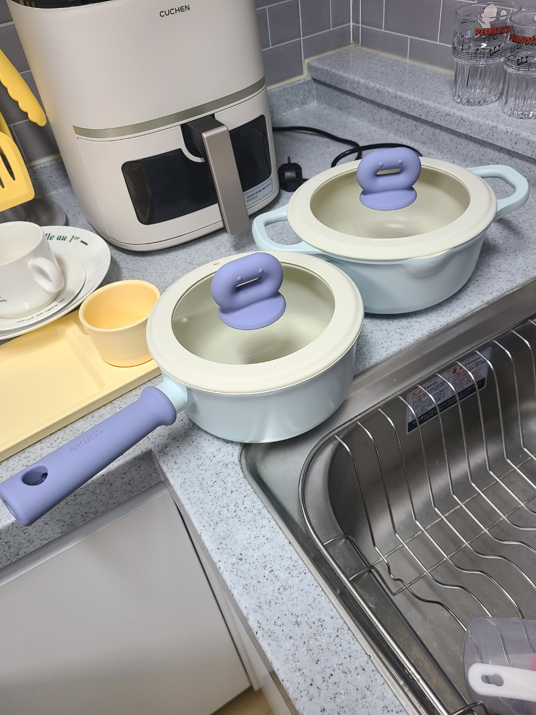아기자기하고 빈티지한 냄비와 접시들, 파스텔 톤의 소품들.