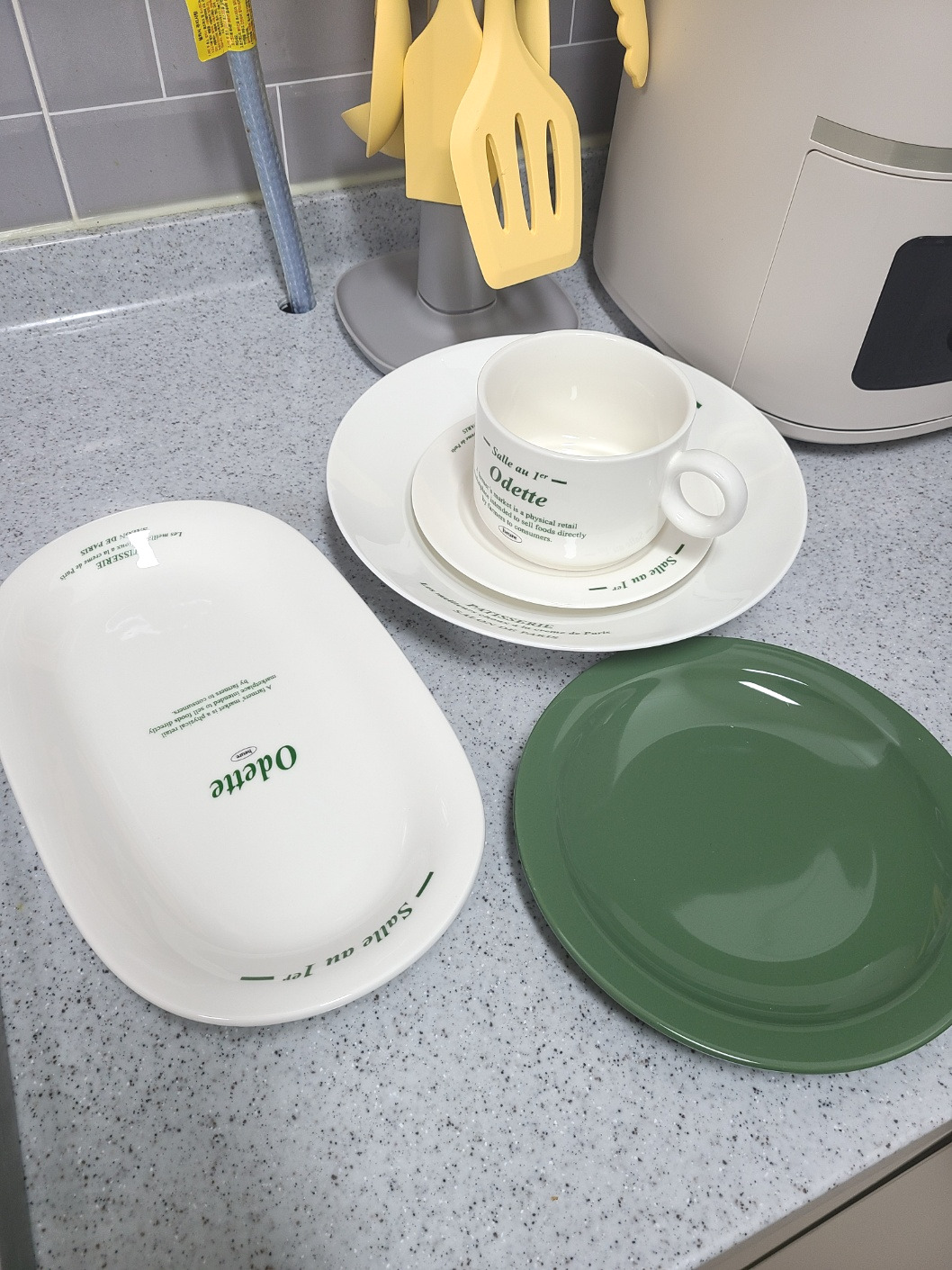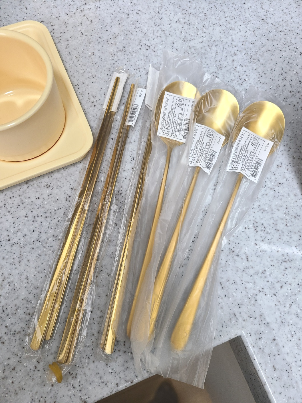 그리고 현실이 금수저가 아니라서 밥 먹는 숟가락이라도 금수저를 쓰고싶다는 마음으로 구매한 금색의 수저와 젓가락, 귀여운 수저받침들, 데코용 소품들...