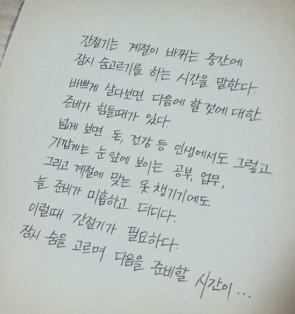 우리 인생에도 모든 마디마디에 간절기가 필요하다.