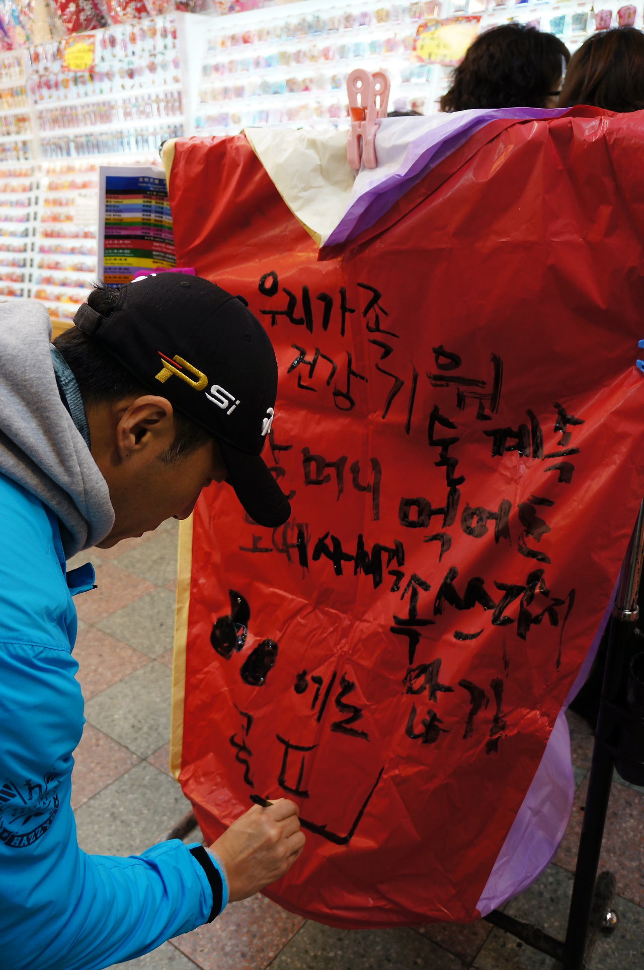 우리는 붓으로 열심히 소원을 적었다.