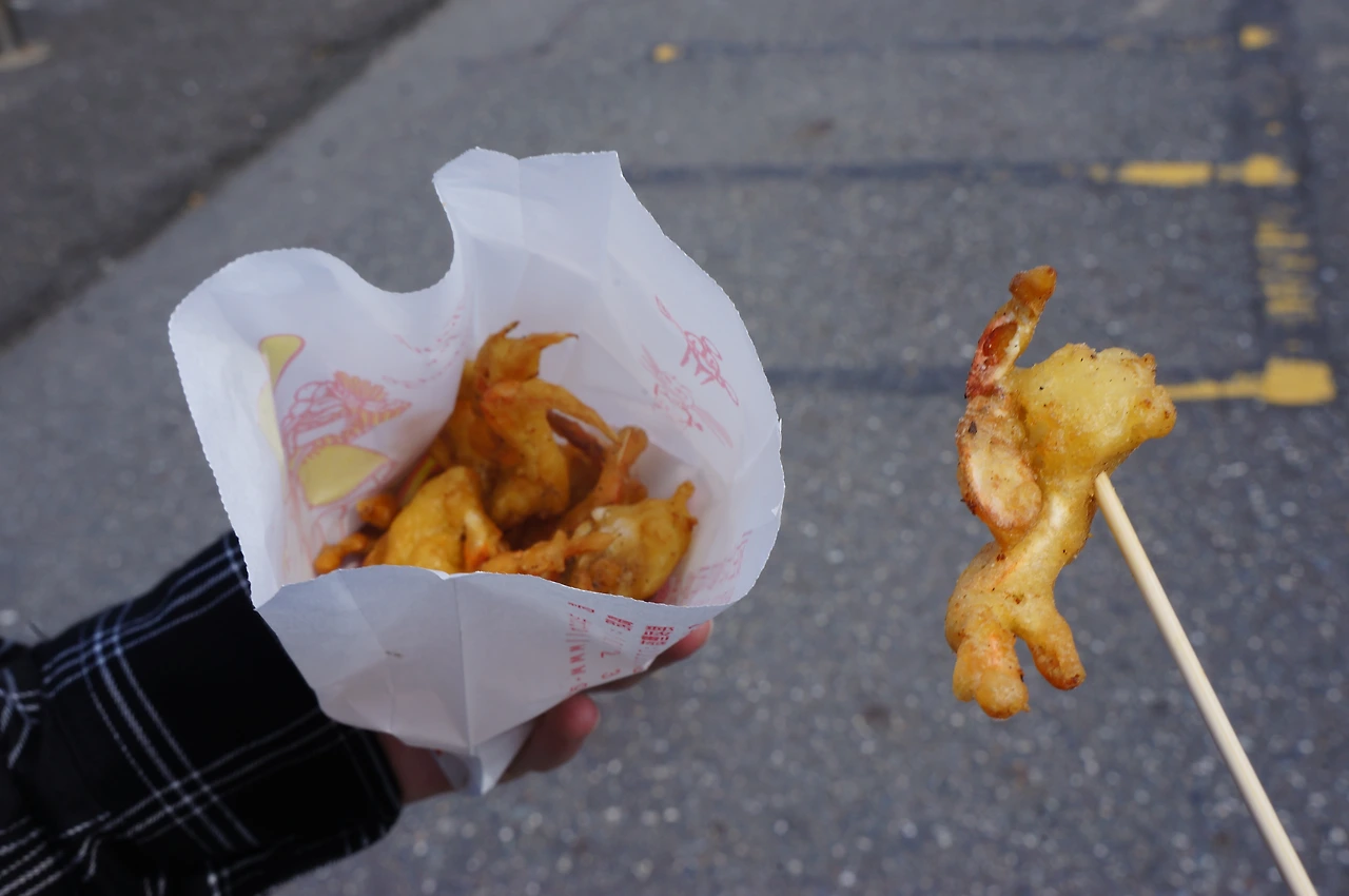 길을 걸으면서 1개씩 먹어보는 음식들이