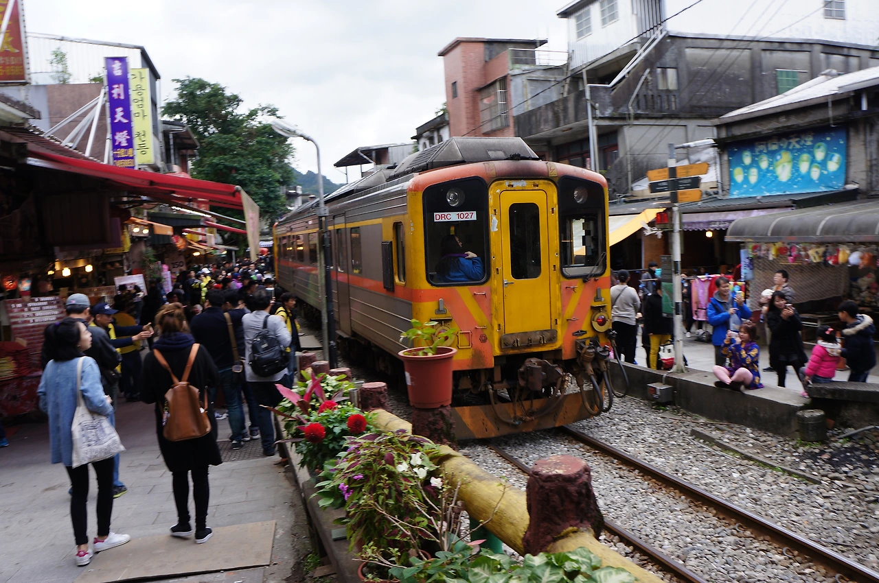 작은 철로 위에 사람들이 모여 천등 날리기를 하는 모습과 저 멀리 날아가는 천등의 모습이 볼만하다.