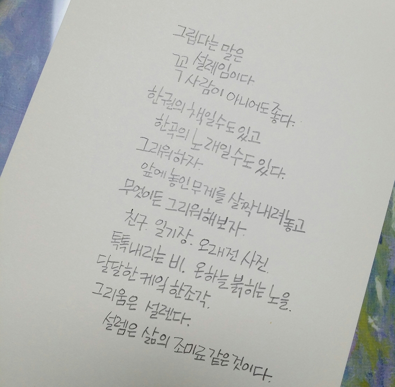 앞에 놓인 무게를 내려놓고 무엇이든 그리워해 보자.