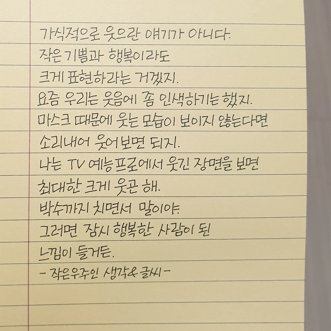 요즘 우리는 웃음에 좀 인색하기는 했지.