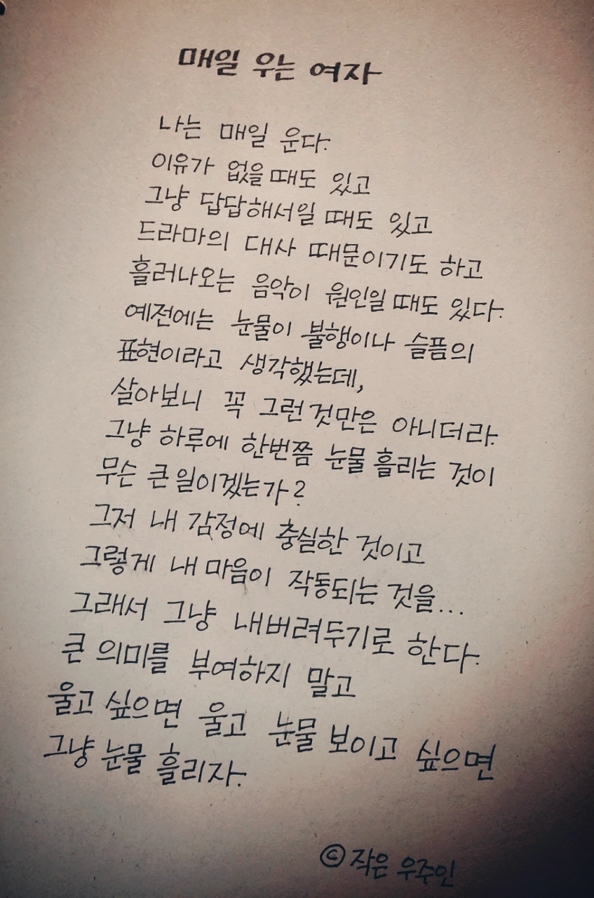 그냥 하루에 한번 쯤 눈물 흘리는 것이