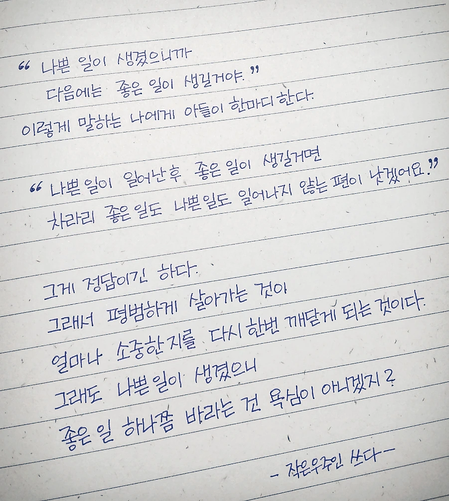"나쁜 일이 일어난 후 좋은 일을 생길거면