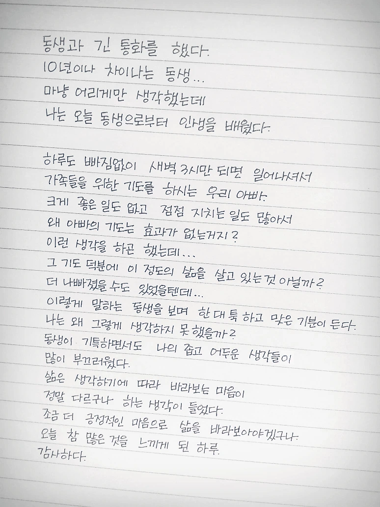 동생과 긴 통화를 했다.