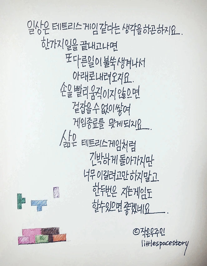 삶은 테트리스 게임처럼 긴박하게 돌아가지만